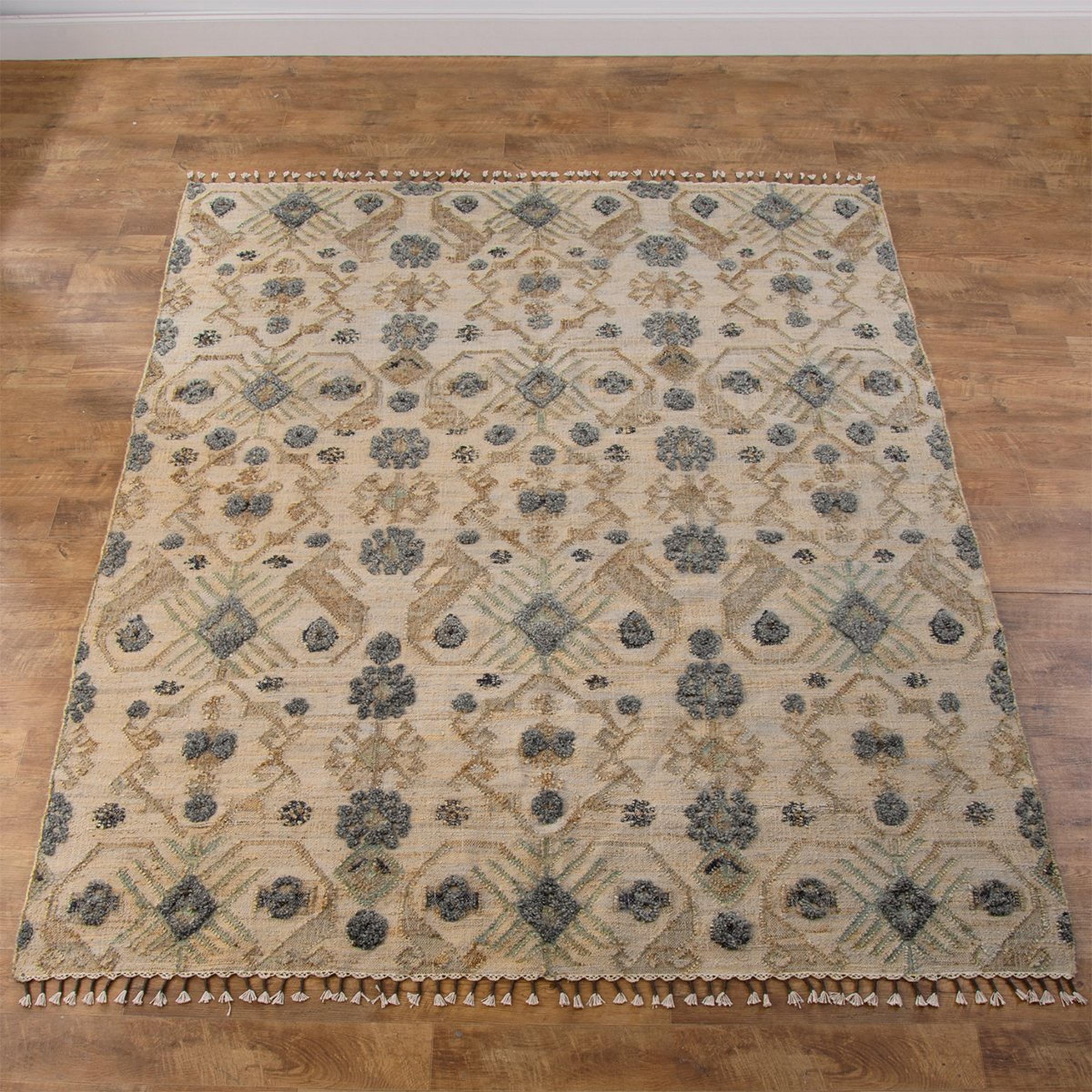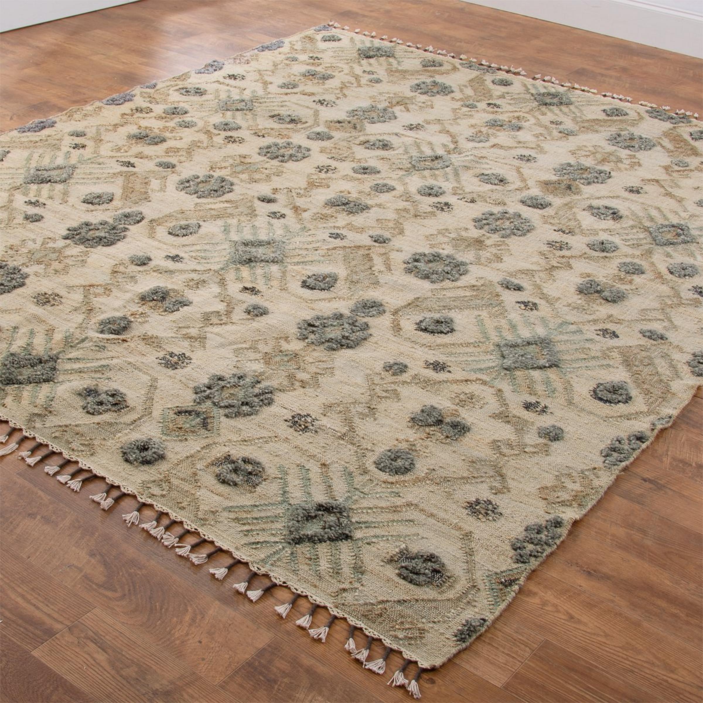 Soft tones run throughout our Finley Handwoven Rug to be integrated into your bohemian living room or ski lodge den. The free-spirited pattern is arranged with geometric shapes and linear accents with tassel ends to tie the piece together.