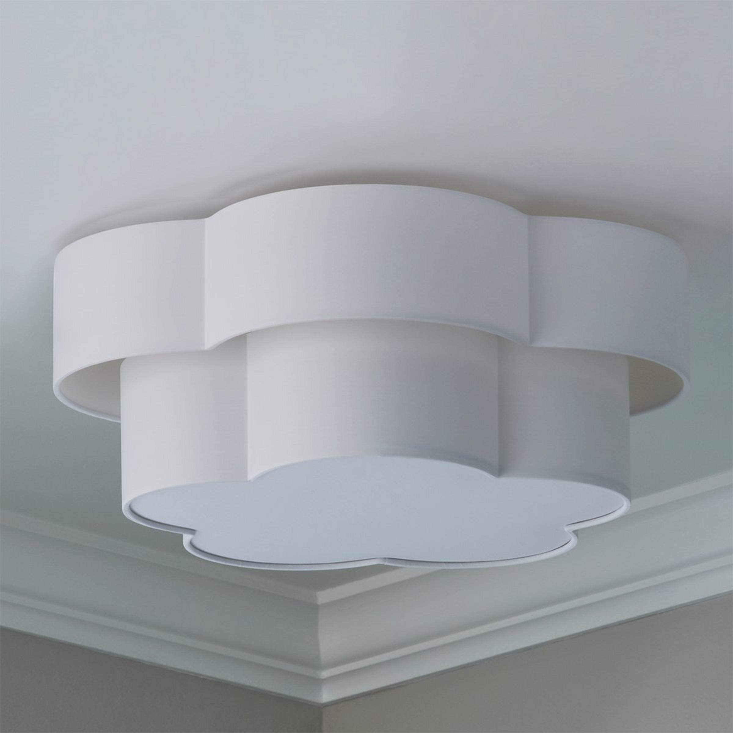 The floral profile of this ceiling light lends a youthful and playful feel that is perfect for a bedroom, hall, living room, or nursery! Fabric diffuser beneath the innermost shade softens light and is easy on the eyes for an added bonus.