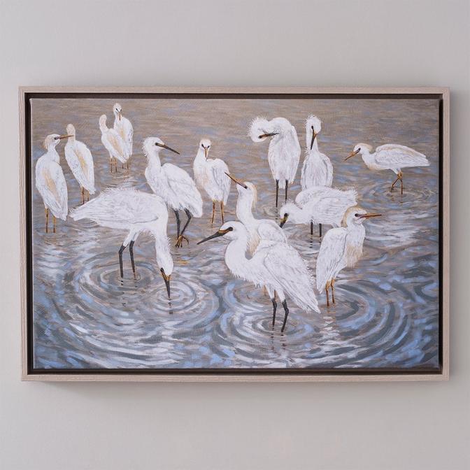 Birds abound in this print of an oil painting. Not just for using in a coastal home, but perfect for bringing a taste of the water into any space. This serene scene is sure to fit right in with any decor you have.