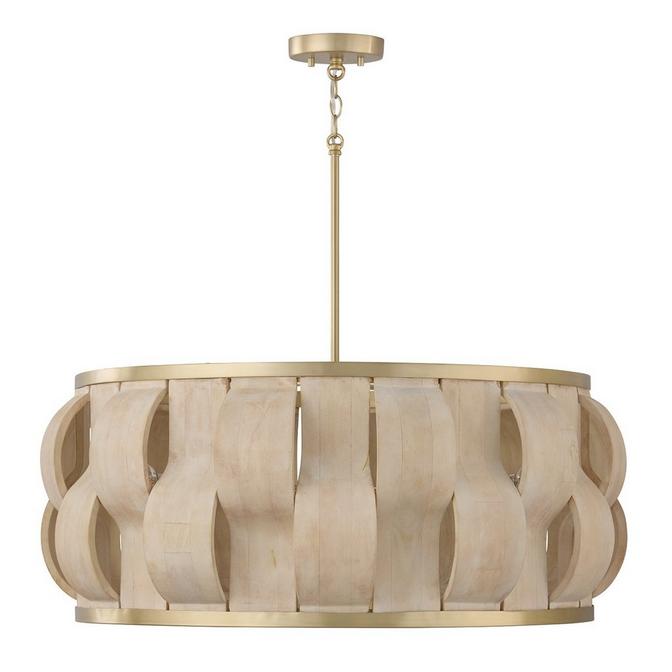 Our Flux Chandelier's wooden slats have a surreal feel that draws the eyes and gives your space an artistic edge. The undulating curves create openings in the expansive drum silhouette, allowing light to pass through for an ethereal, surreal look. Capped by its slim metal frame, the bleached mango wood showcases a subtle wood grain that emphasises its material and highlights the wavy shape. Effortlessly dramatic with an otherworldly fluidity, this piece adds serenity to your space while brightening it with a warm glow.