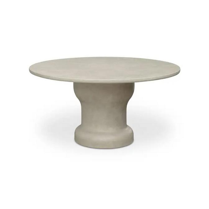Simple yet elegant, this cast concrete outdoor table is perfectly at home in the most elegant formal English Garden and is also just as perfect on a rooftop patio in a modern condo in the middle of the city. The textured plaster look finish also gives this concrete table some additional interest. With this outdoor table some hairline cracks are expected and will not impact the structural integrity of the table, but it is important to cover and store this item during inclement weather. It is recommended that you apply wax every 3 to 6 months to maintain the finish. Bring indoors during extreme freezing conditions.