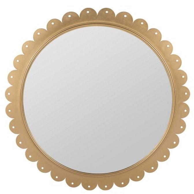 This round mirror dazzles when placed in a front entry or living room as it accentuates space with its unique frame. The scalloped edge is punctuated by cutouts that add further dimension and flair to your décor. Like a ray of sunshine, this piece provides warmth and liveliness. D-ring hardware included.