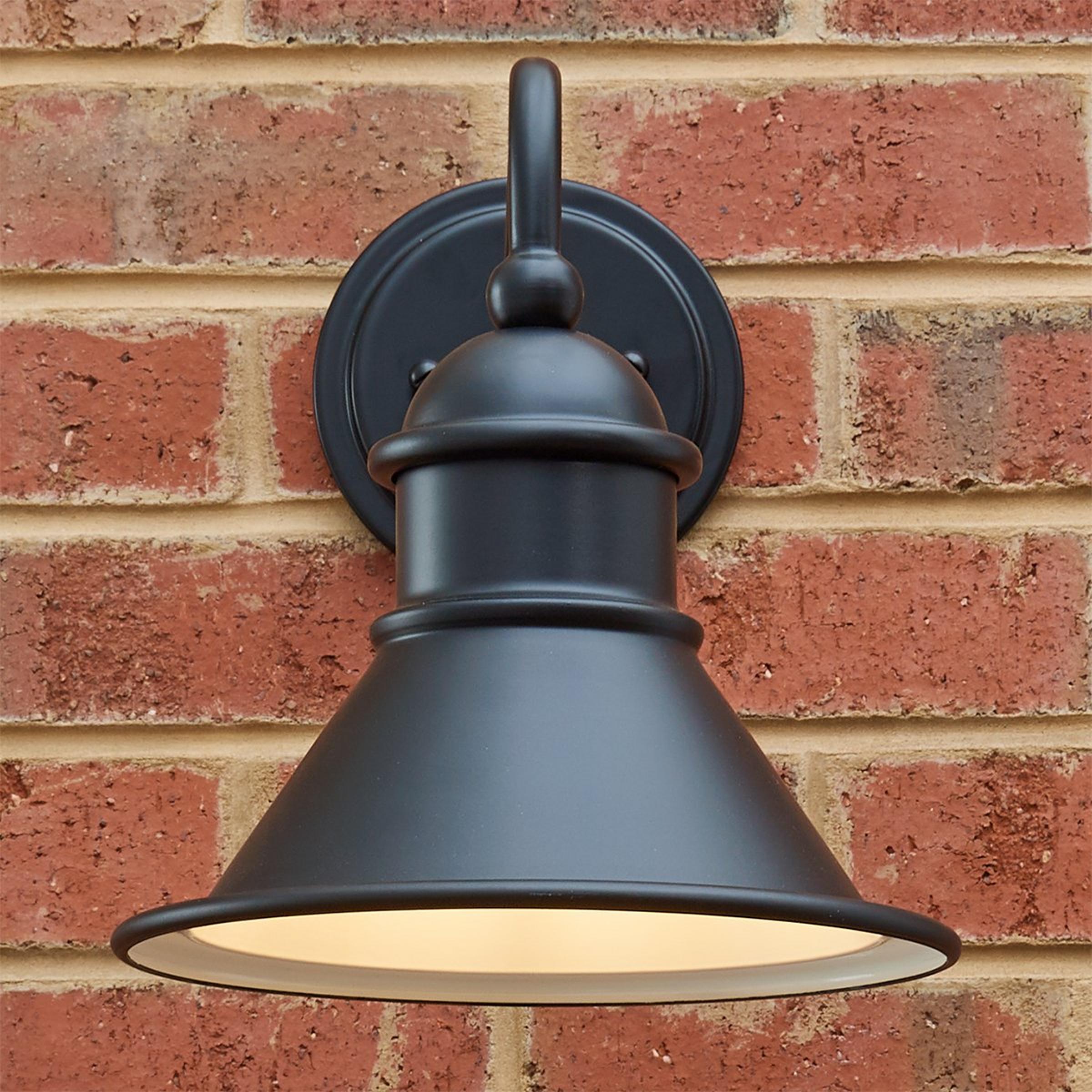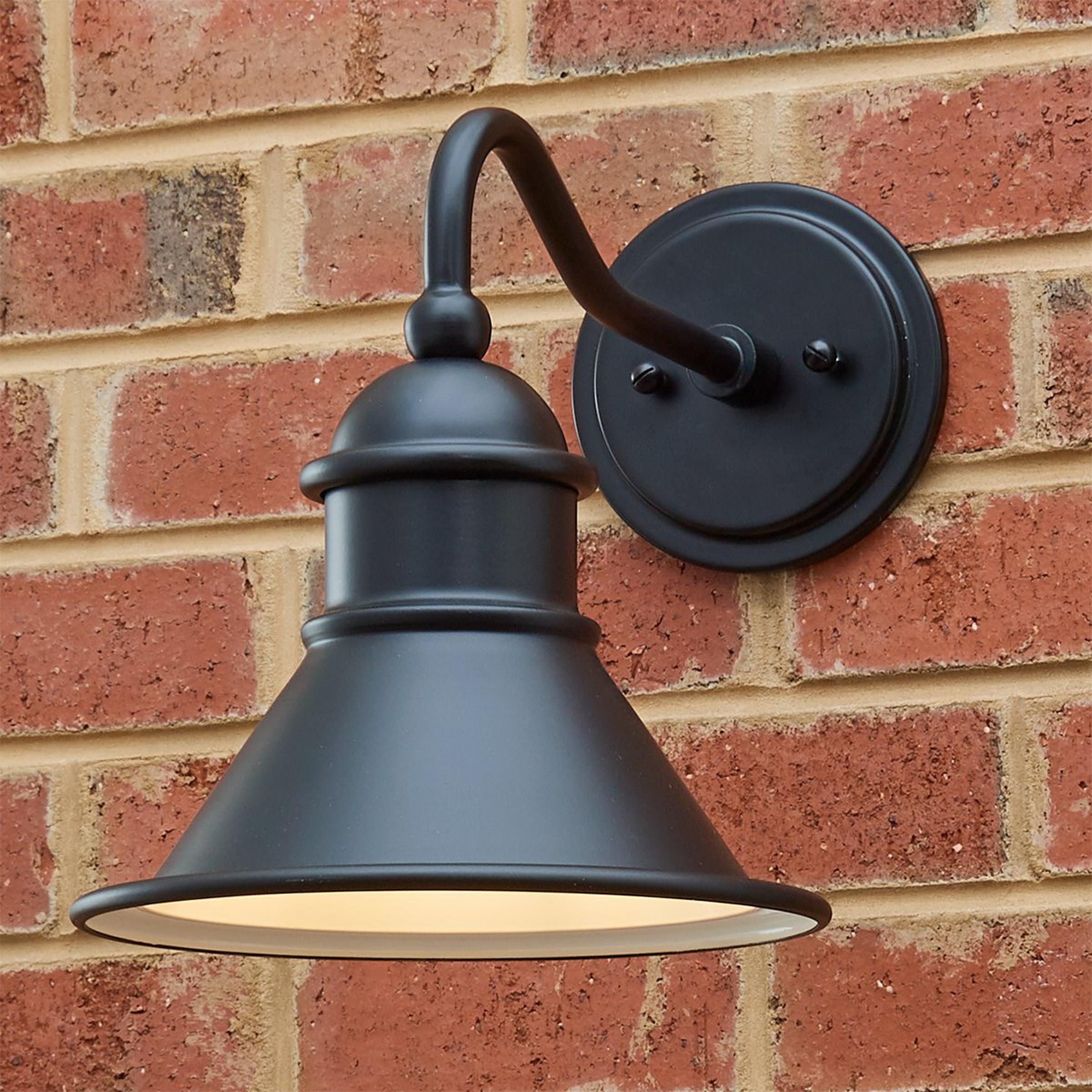A vintage factory style takes the design of our Garner Outdoor Sconce by storm. The gooseneck arm curves down to the flared shade with a lighter interior. For a transitional style, add character to your outdoors with this simple yet chic fixture.