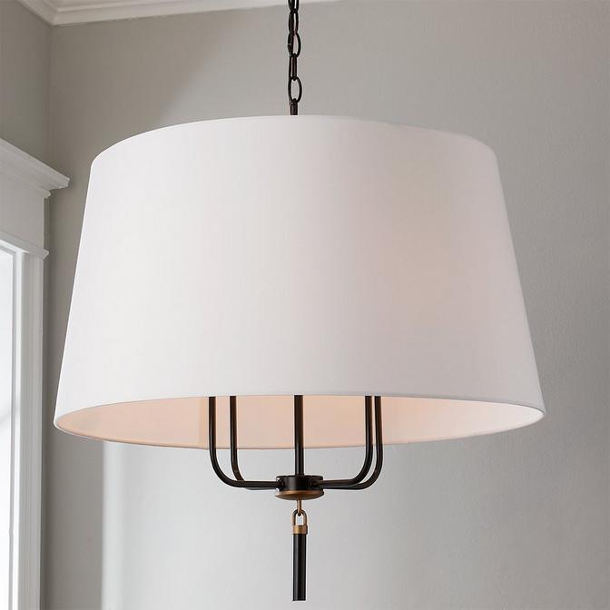 Classic design brings us our Gideon Collection, highlighting a mixed metal aesthetic and stark white shades. With tassel detail attached by brass loops, each figure has a sleek personality yet will bring a bold presence into your space.