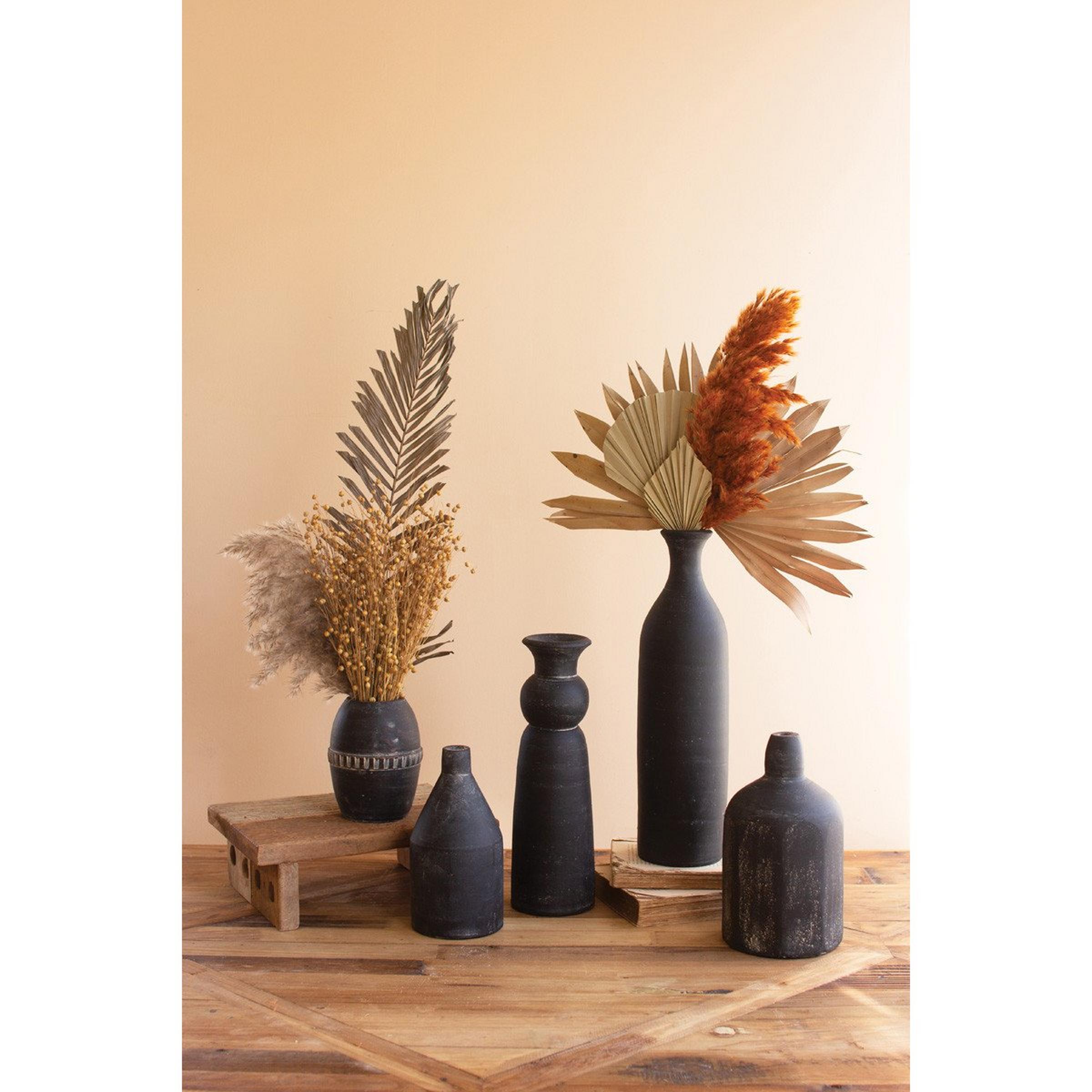 Add an organic touch to your space with this set of five different vases. Made of clay, each piece features a unique silhouette, complementing a host of styles ranging from modern to bohemian. Extra large (16"Hx4.5"Wx4.5"D). Large (13"Hx4"Wx4"D). Medium (10"Hx5.5"Wx5.5"D). Small (8.5"Hx4"Wx4"D). Extra small (6"Hx4"Wx4"D).