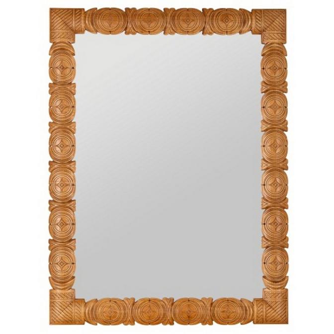 This dazzling mirror boasts a thick, bold border full of ornamental detailing. The carved-wood look of the frame, due to all of its magnificent texture, can fit into an interior that incorporates rattan finishes, geometric furniture, and more. D-ring hardware included.
