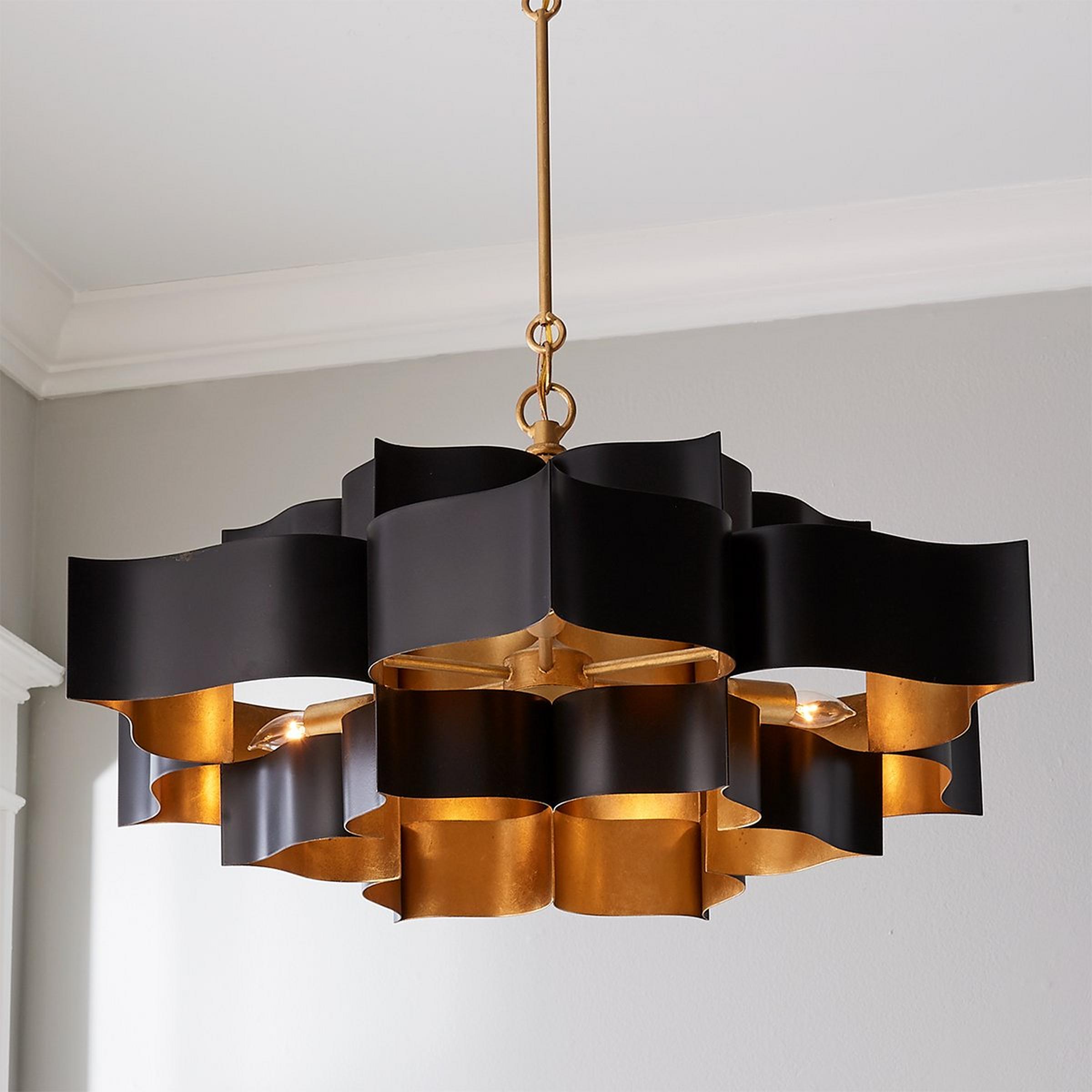 Stunning workmanship is highlighted in the formation of the Grand Lotus Chandelier which is made from wrought iron and sheet metal and then skillfully finished with Antique Gold Leaf features. The Grand Lotus Chandelier is a gorgeous interpretation of the classic blossom.