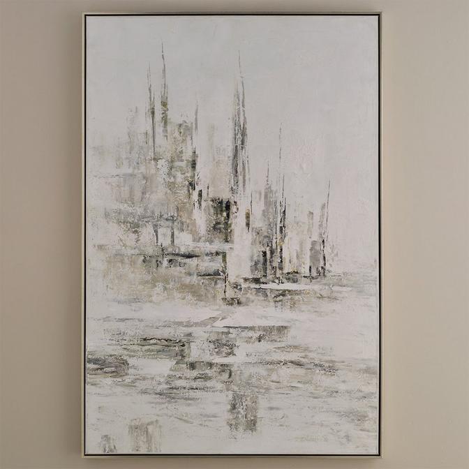 Griseo Portum wall art invites contemplation through its interplay of texture, shadow, and light. Vertical and horizontal brushstrokes converge in a symphony of soft whites, silvery grays, and charcoal accents, evoking both structure and serenity. This piece offers a quiet sophistication that complements modern interiors, from gallery-inspired lofts to curated living spaces. Whether positioned as a focal point or part of a layered vignette, Griseo Portum speaks to those who appreciate abstraction as a language of emotion and elegance.
