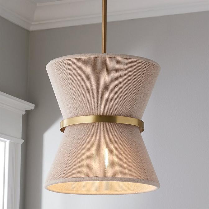 Eye-catching elegance is found in our Halia Collection, drawing inspiration from classic, Hollywood style. An artisan touch is incorporated into each fixture's loomed hourglass silhouette for a unique yet trendy design. An arrangement of sizes is available to complete your space's needs. This fixture has handcrafted details, meaning subtle variation from piece to piece makes each light unique. The natural ivory rope is hand-bleached, the rope is hand-wrapped, and the brass patina is hand-applied.