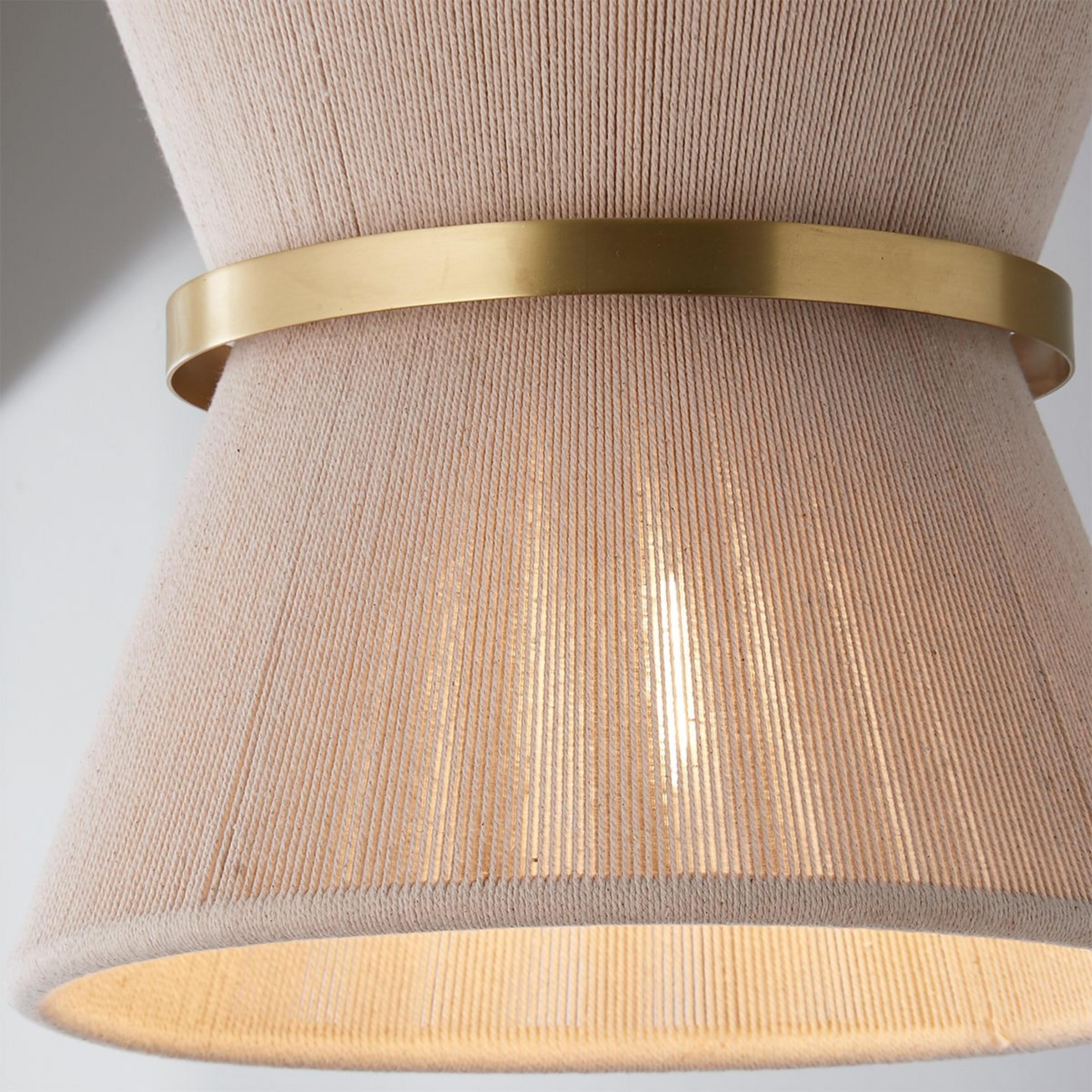 Eye-catching elegance is found in our Halia Collection, drawing inspiration from classic, Hollywood style. An artisan touch is incorporated into each fixture's loomed hourglass silhouette for a unique yet trendy design. An arrangement of sizes is available to complete your space's needs. This fixture has handcrafted details, meaning subtle variation from piece to piece makes each light unique. The natural ivory rope is hand-bleached, the rope is hand-wrapped, and the brass patina is hand-applied.