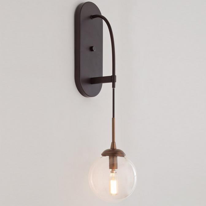 The Hanging Globe Sconce has an eye-catching dramatic look with a clear glass globe that hangs from pendant cord.