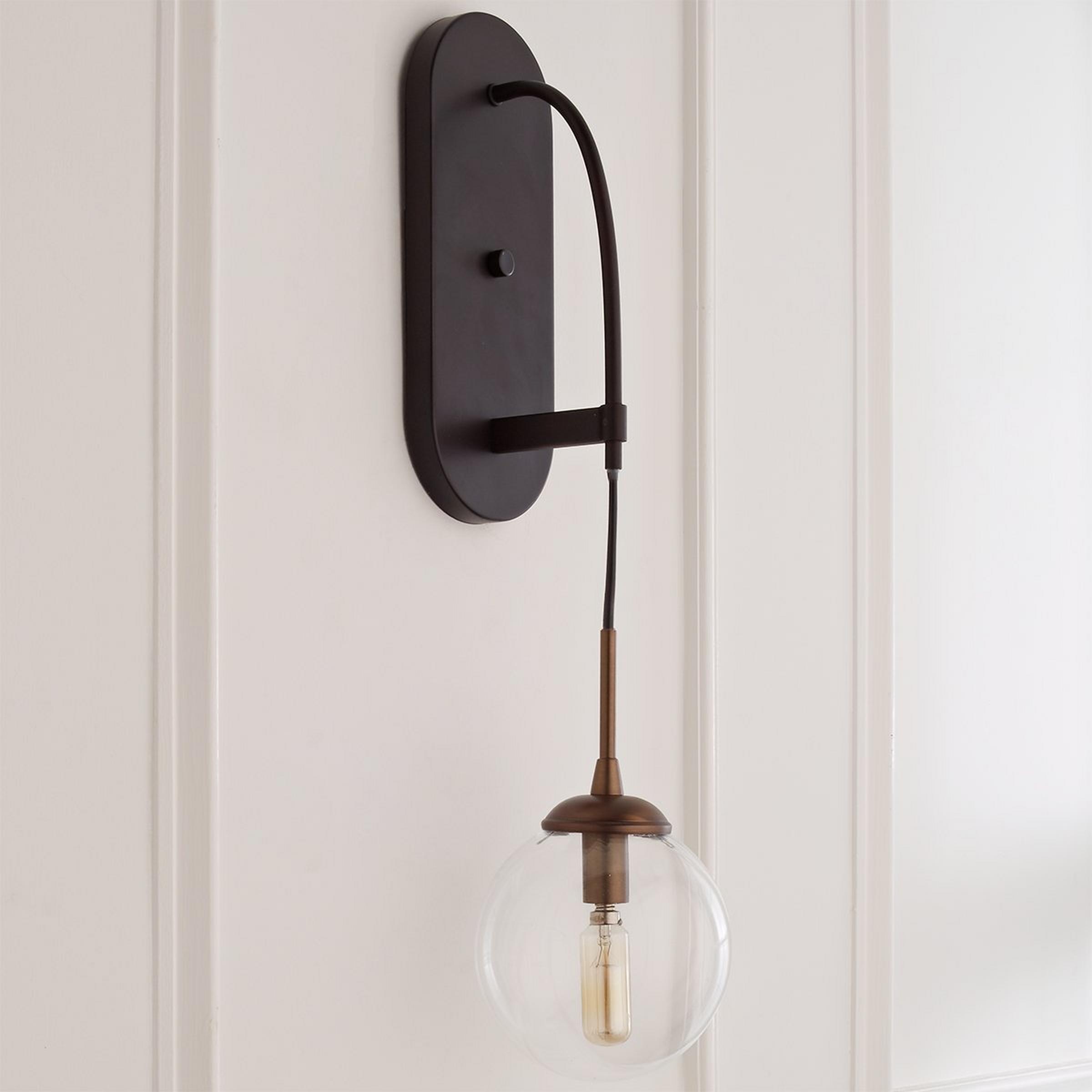 The Hanging Globe Sconce has an eye-catching dramatic look with a clear glass globe that hangs from pendant cord.