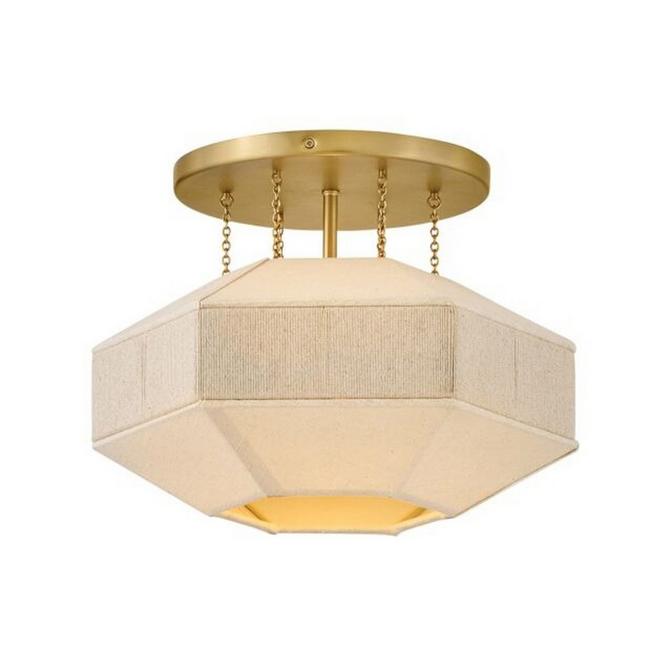 The Harrod Ceiling Light is an exercise in sophistication. Dainty chains surround the rod from which the lantern-style body hangs in space. Light shines through a textured fabric shade, adding a lush appearance to the home.