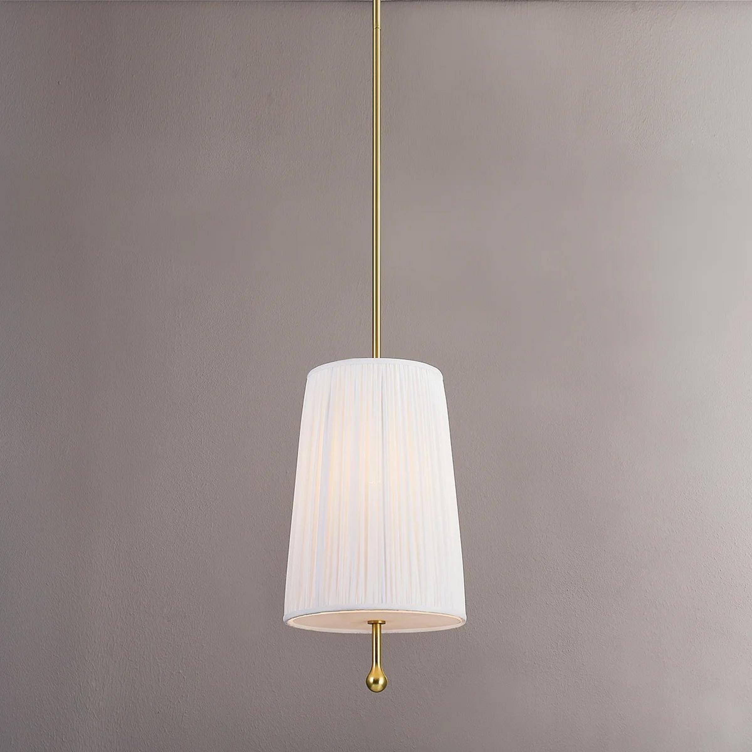 Classic pleats of silky fabric make this collection preppy and charming. The elongated stem ends in a teardrop shape, adding a sturdy contrast to the softness of this design. Style this collection to evoke the feeling of the English countryside or a more traditional aesthetic.