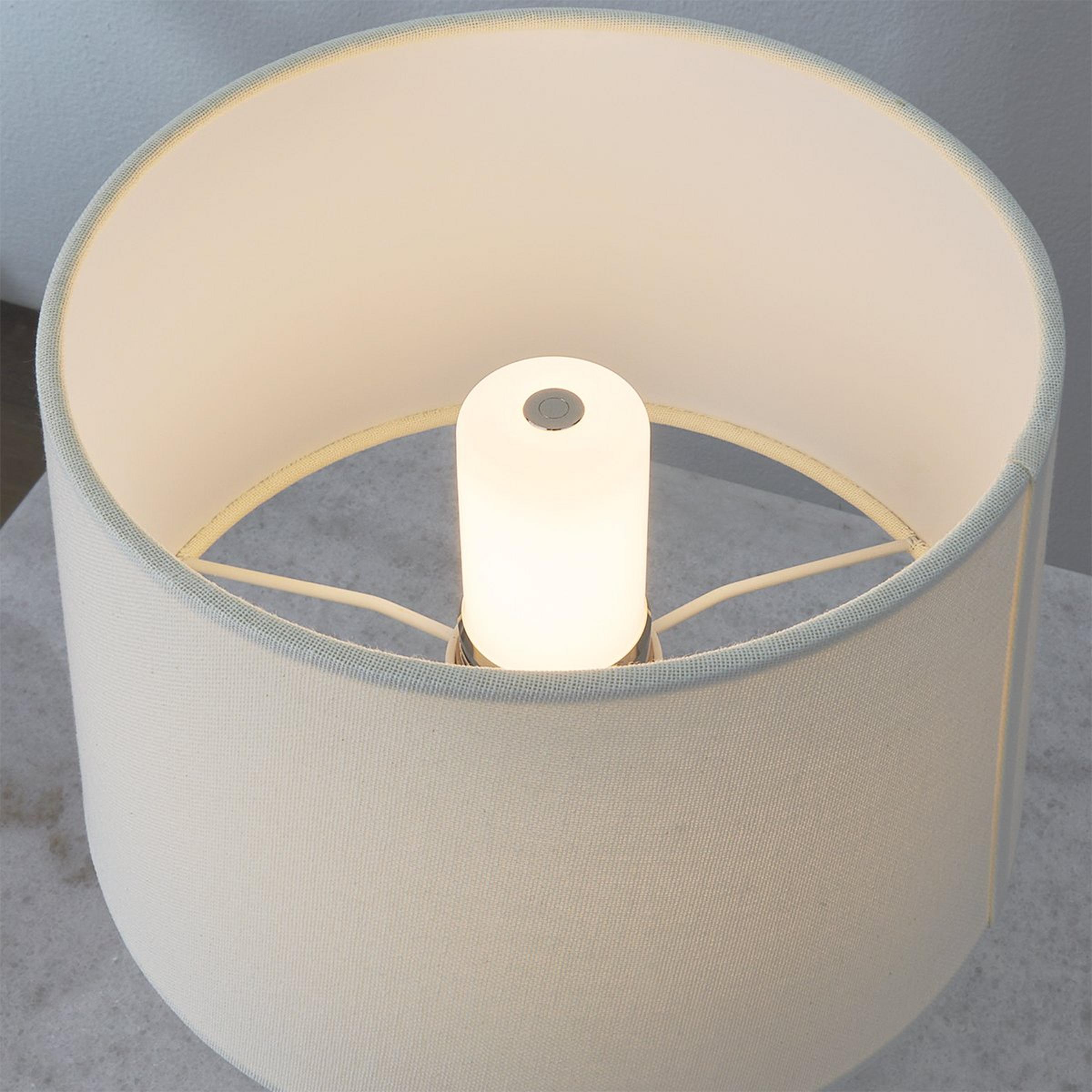 This rechargeable lamp has a glamorous base that is faceted like a gem and capped with a shiny metallic accent. It maintains a minimalistic silhouette by keeping cords hidden, resulting in a tidier space whether placed on a desk, table, or bedside. The cordless nature of this lamp also expands placement options beyond the limits of corded lamps like the center of a room or any other area away from an outlet.
