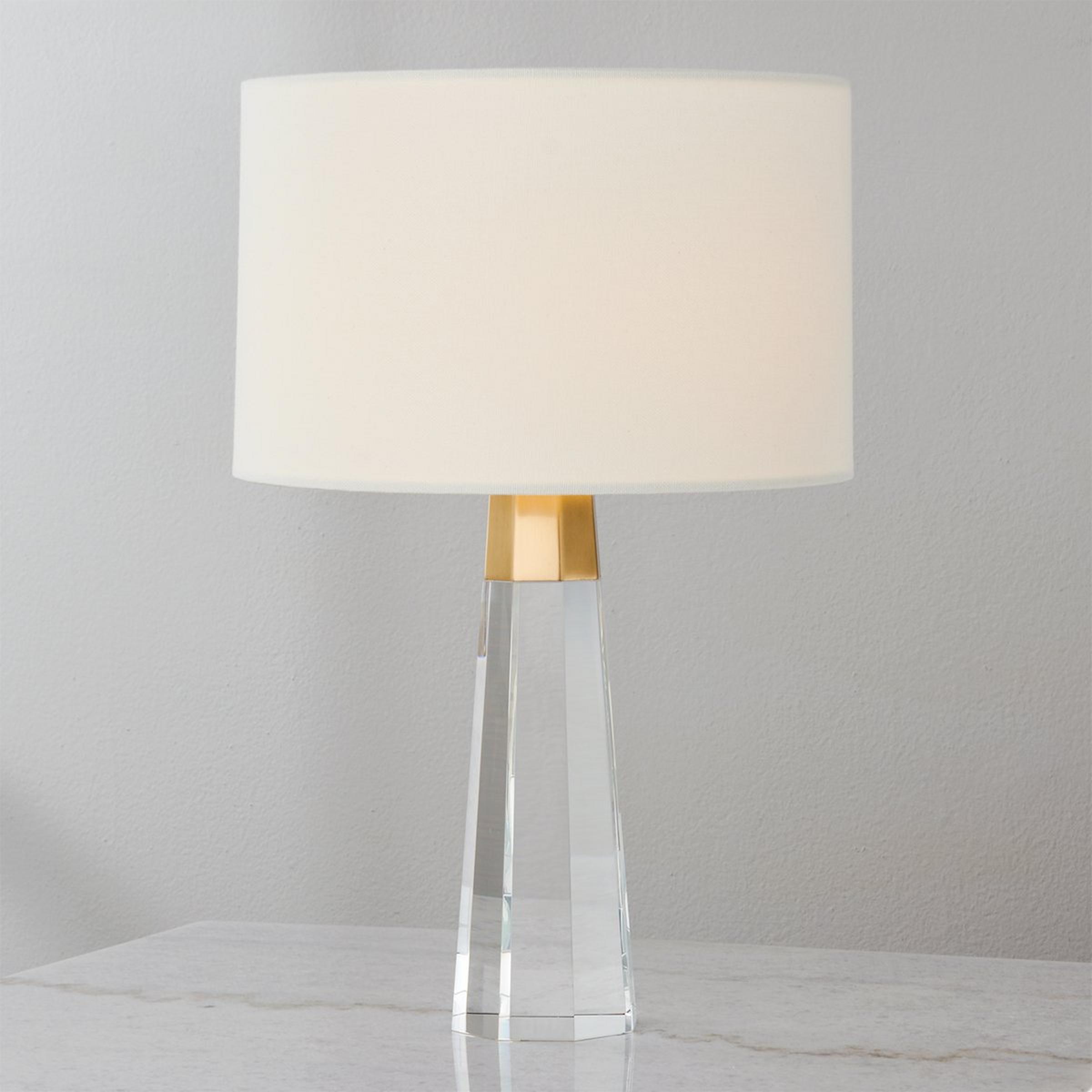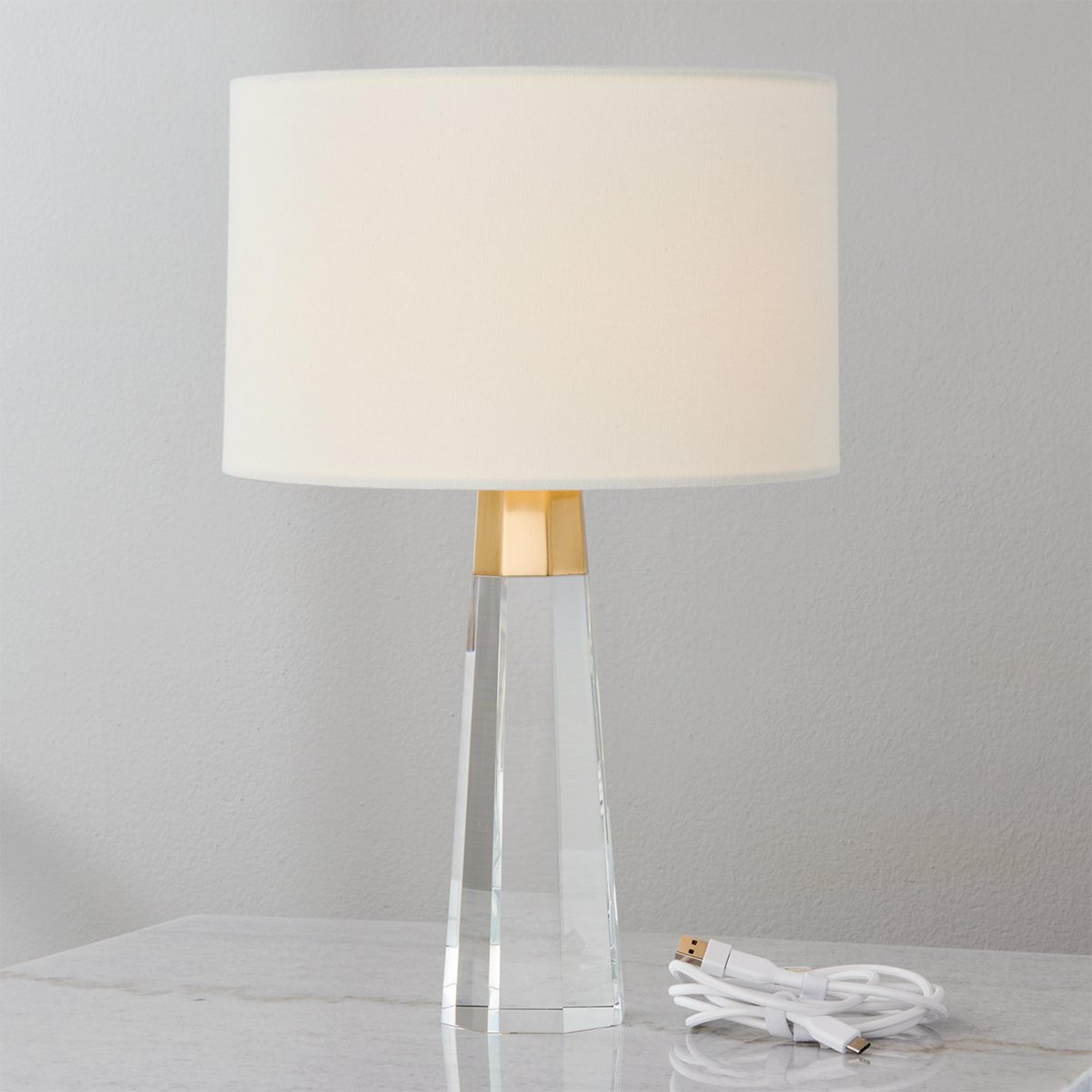 This rechargeable lamp has a glamorous base that is faceted like a gem and capped with a shiny metallic accent. It maintains a minimalistic silhouette by keeping cords hidden, resulting in a tidier space whether placed on a desk, table, or bedside. The cordless nature of this lamp also expands placement options beyond the limits of corded lamps like the center of a room or any other area away from an outlet. Includes a Module and Charging Cord.