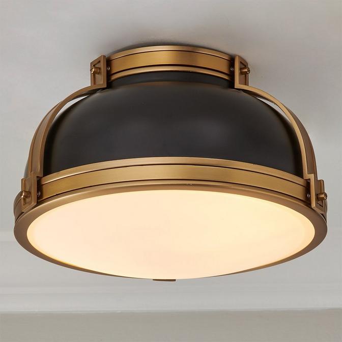 Helsinki draws inspiration from vintage design, blending traditional flourishes with a modern silhouette. Its metallic double-strap design evokes a nautical aesthetic, adding a beautiful and intricate look. Light diffuses through etched glass, illuminating your space with a warm glow. This light is ideal for adding a structural piece with distinctive metallic hues to create a timeless feel.