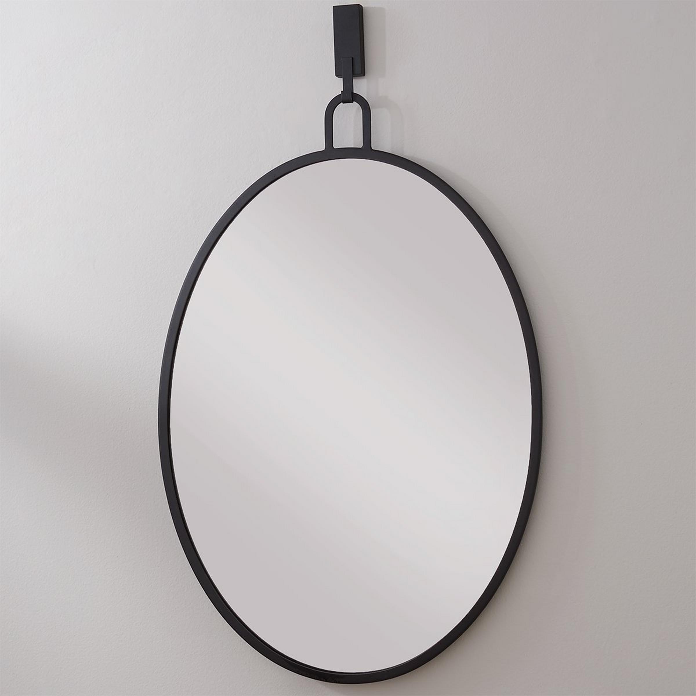 Minimalistic and magnificent, this thin-framed ovular mirror has one loop that suspends from a wall hanger - taking on the essence of a pocket watch. The classic style makes a great addition to any theme of decor, including traditional, vintage, and modern farmhouse. Add this elegant mirror to a bathroom vanity, bedroom, living room, hallway, or entryway.