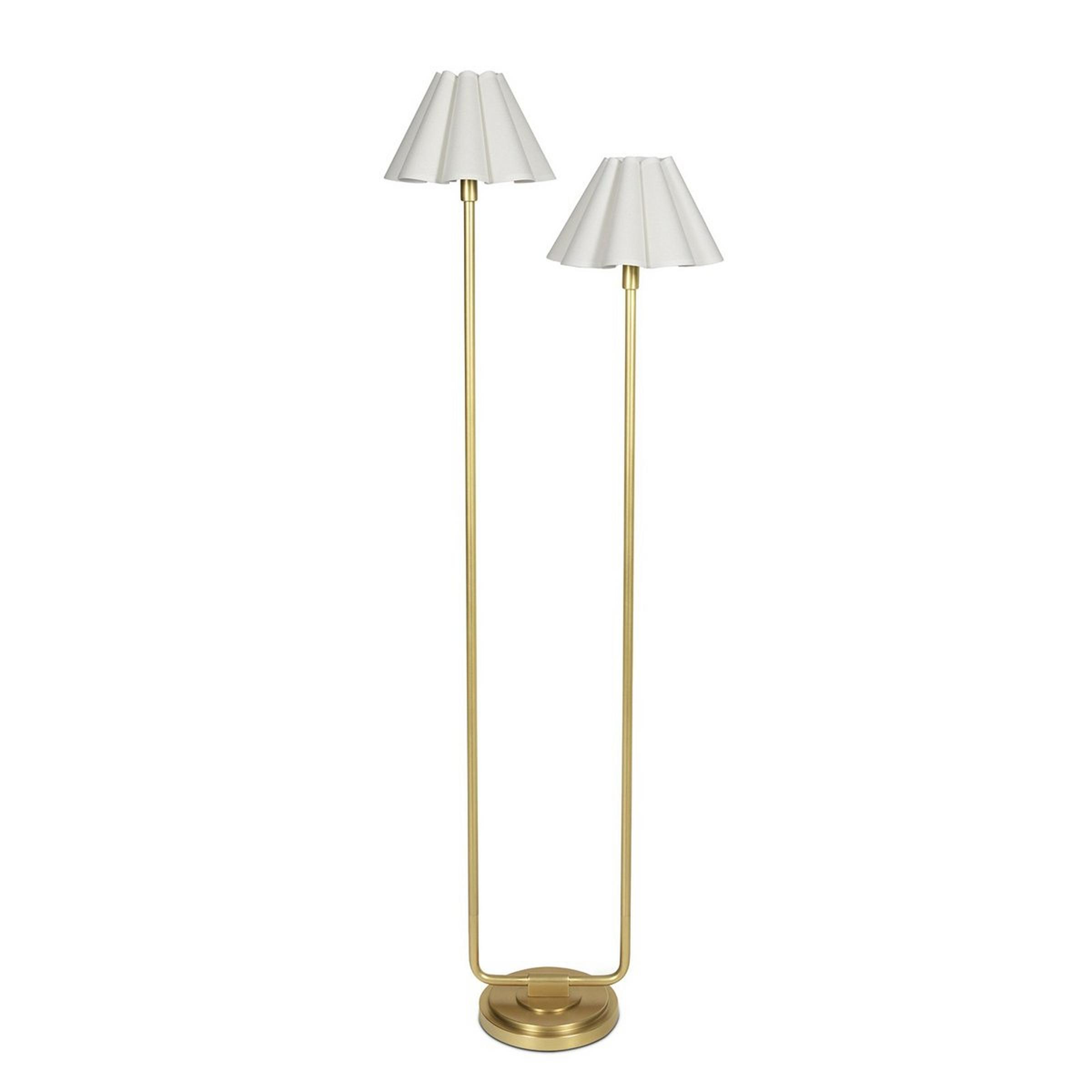 Dainty and simple, this floor lamp has a twinned silhouette with decoratively pleated shades to introduce a timeless style to the home. Ideal for living rooms or bedrooms, the slim profile maximizes illumination and minimizes footprint.