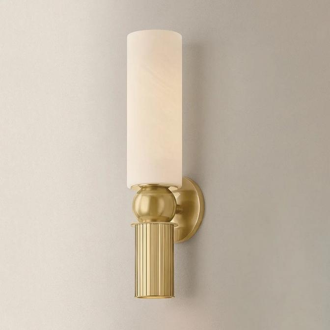 This stunning accent piece utilizes a cylindrical glass shade atop a metallic base to provide an architectural aesthetic reminiscent of classical columns. Function has been considered as much as form; not only does the candlestick-style torch cast an ambient glow to fill a bathroom, a second light source aims light downward over any task zone such as a sink to enhance the visual experience. Install a pair of these on either side of a mirror to cast glamorous photo-ready lighting, or line the length of the hallway with a row of these sconces for accent lighting that punctuates the space with style.