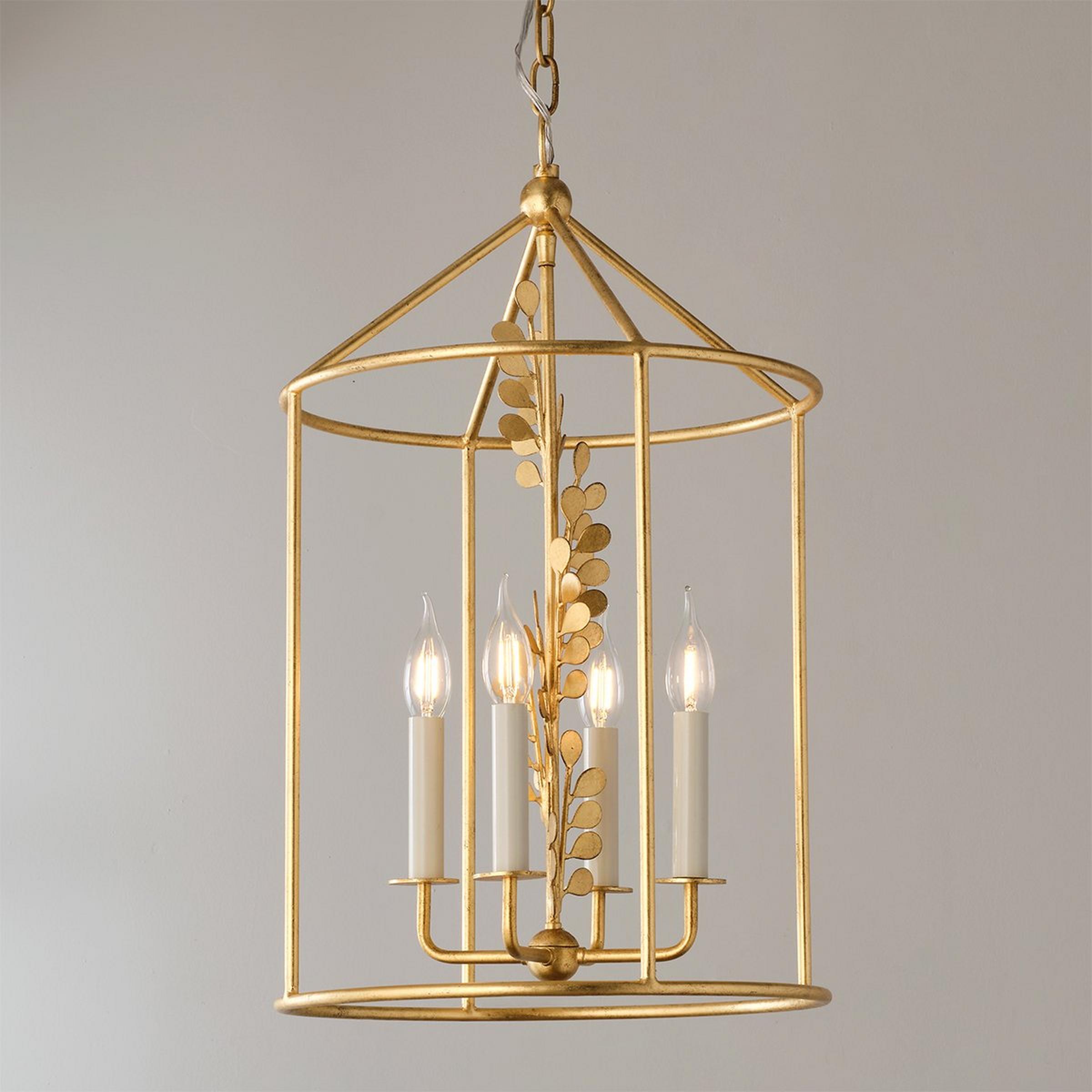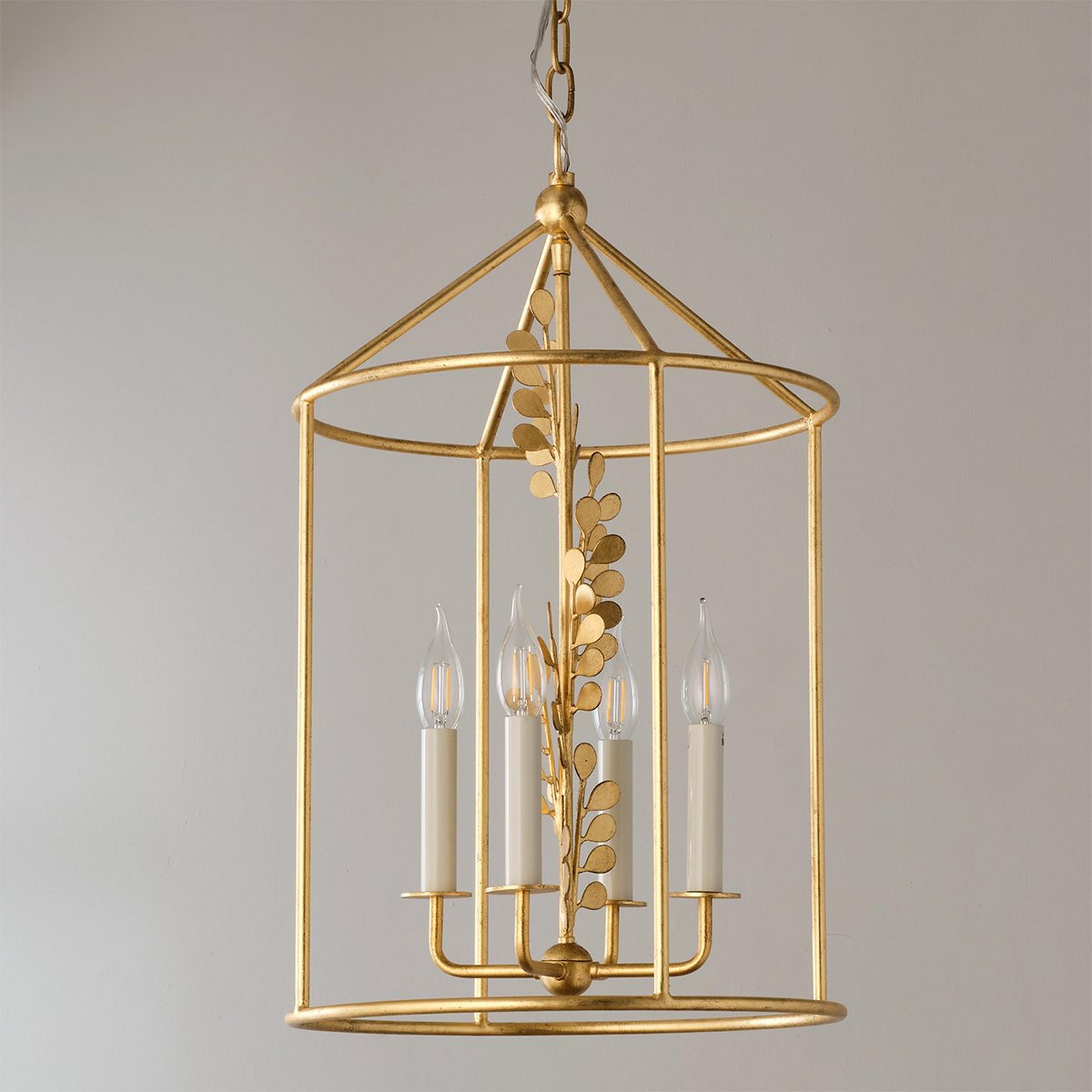 A twisting gilded vine creates the ethereal motif that defines the Hiedra collection, combining its organic inspiration with modern opulence. This lantern's minimalist design is sophisticated and captivating, it's airy cage allows light to illuminate the metallic leaves and warm your space. Exude an air of luxury in your space with its rich texture and enchanting silhouette to create a stunning focal point, inviting admiration.