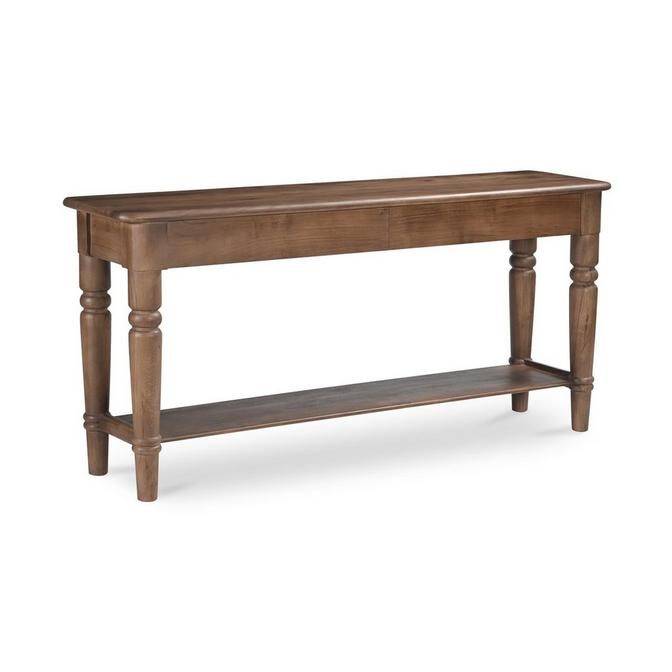 The Hilliard Console Table follows the legacy of classic furniture through its solid acacia wood and turned-leg design. As an added bonus, the long side of the table has two hidden shelves without visible hardware or pulls for extra storage.