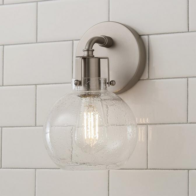 Seeded glass is a well-loved light fixture material that has the appearance of containing bubbles within the glass shade, adding interesting texture. This fixture features clear seeded glass shades that serve the purpose of subtly diffusing the lamping while allowing the exposed bulb to be a central design element. Choose the look that's right for your space with a variety of backplate and arm finish options.