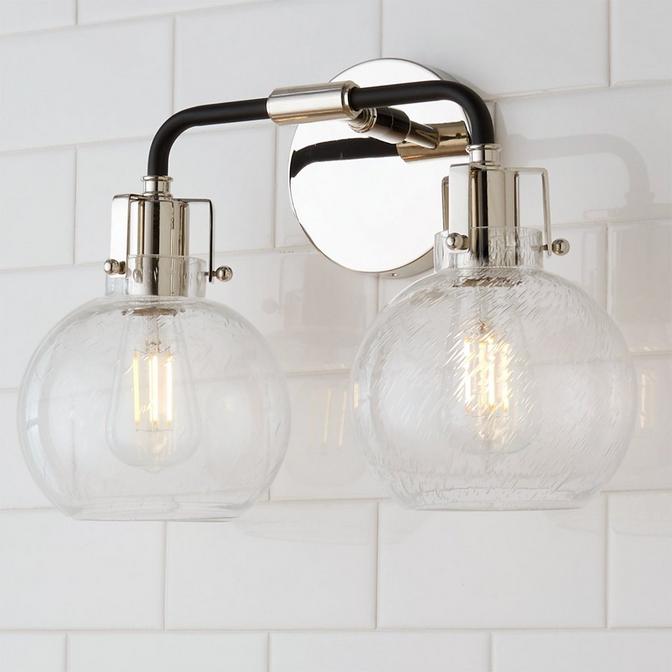 Seeded glass is a well-loved light fixture material that has the appearance of containing bubbles within the glass shade, adding interesting texture. This fixture features clear seeded glass shades that serve the purpose of subtly diffusing the lamping while allowing the exposed bulb to be a central design element. Choose the look that's right for your space with a variety of backplate and arm finish options.