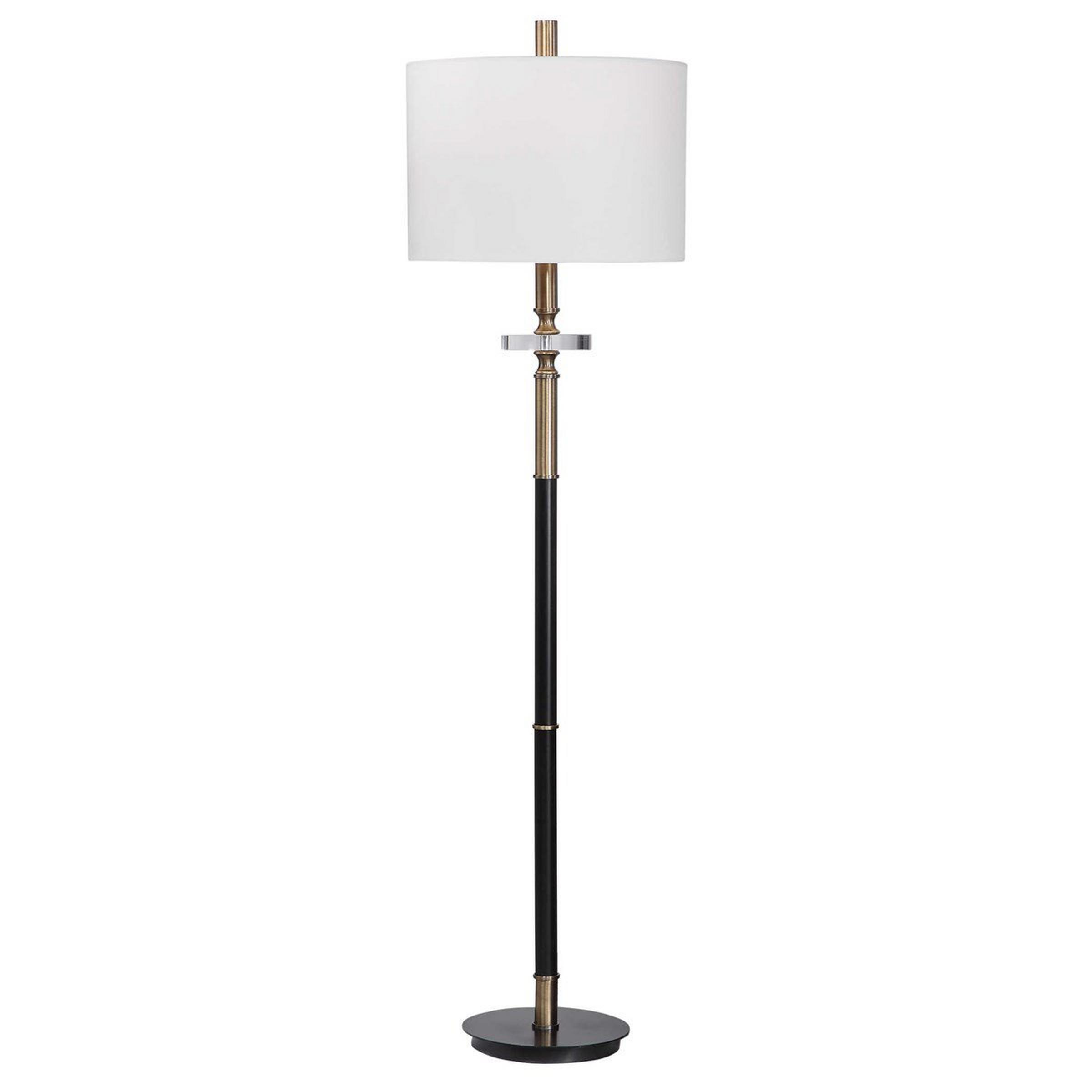 Our Hint of Glam Floor Lamp has a sophisticated note that elevates the elegant atmosphere of your office, living room, or personal library. The classic floor lamp shape gets a subtle upgrade with a thick crystal ornamentation wedged between antique brass accents.