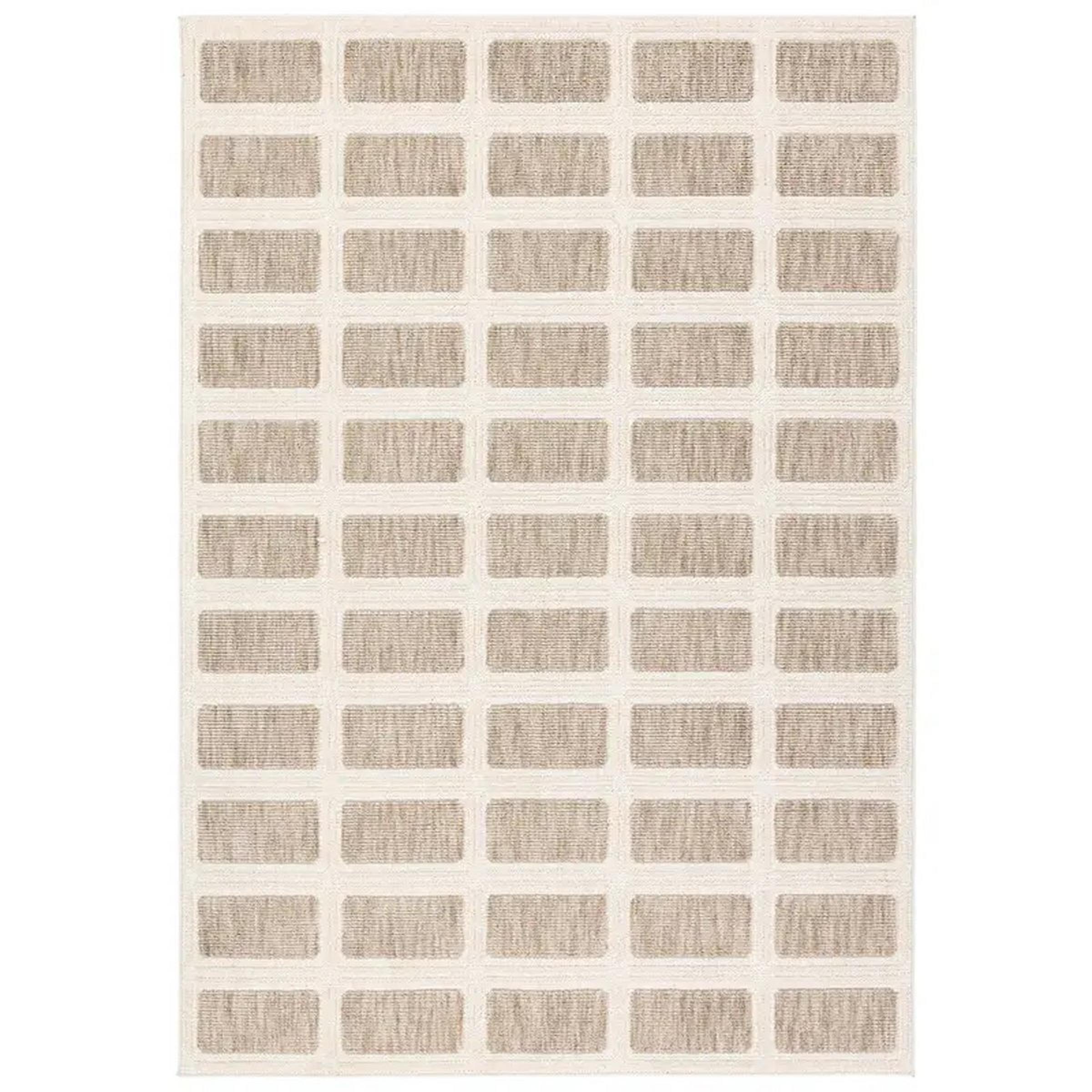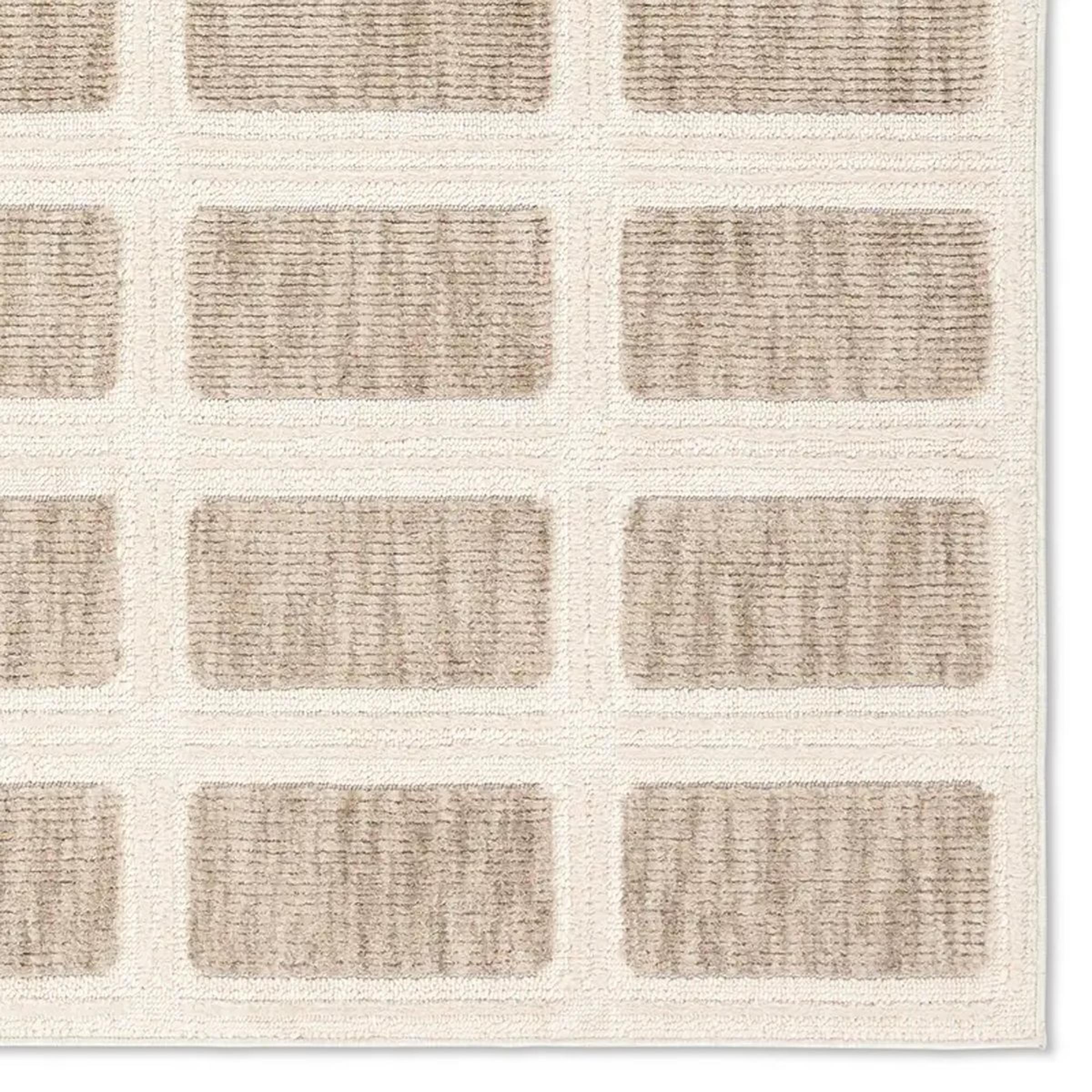 The high-low pile of the Hiro Rug forms a grid of brick-like rectangles that form a firm foundation in a room. Fine details in the weave add a dimensional texture with elegance in calming neutral hues.
