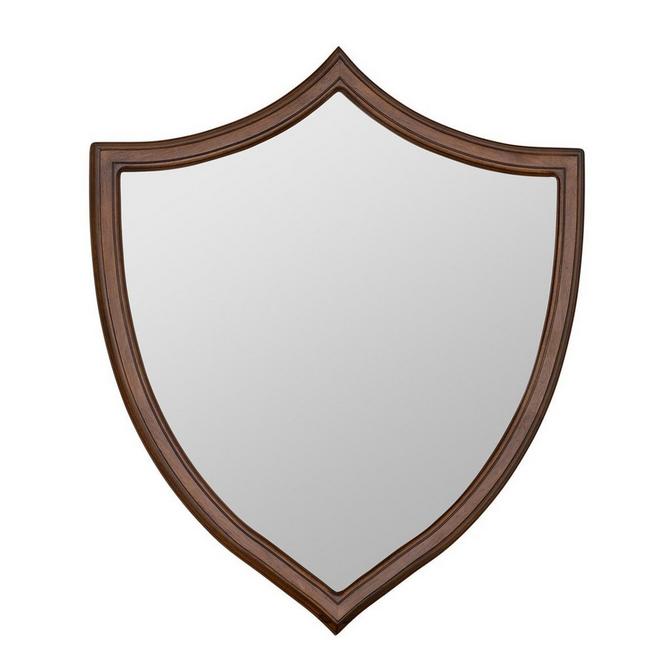 The Hoplon mirror is designed in the shape of a classic shield, featuring a curved top with tapered or pointed edges at the bottom. The distinctive shape offers a sharp and bold statement.