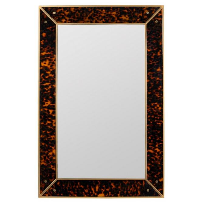 Classic style abounds in this simple, yet elegant faux tortoise shell mirror from designer Erin Gates. Made from acrylic set in metal the translucence gives the tortoise shell a lumious depth and richness that painted tortoise shell struggles to provide. Perfect in a dining room over a buffet or in a powder room over a sink. This mirror is sure to stand the test of time and be a stand out piece in any space it is used.