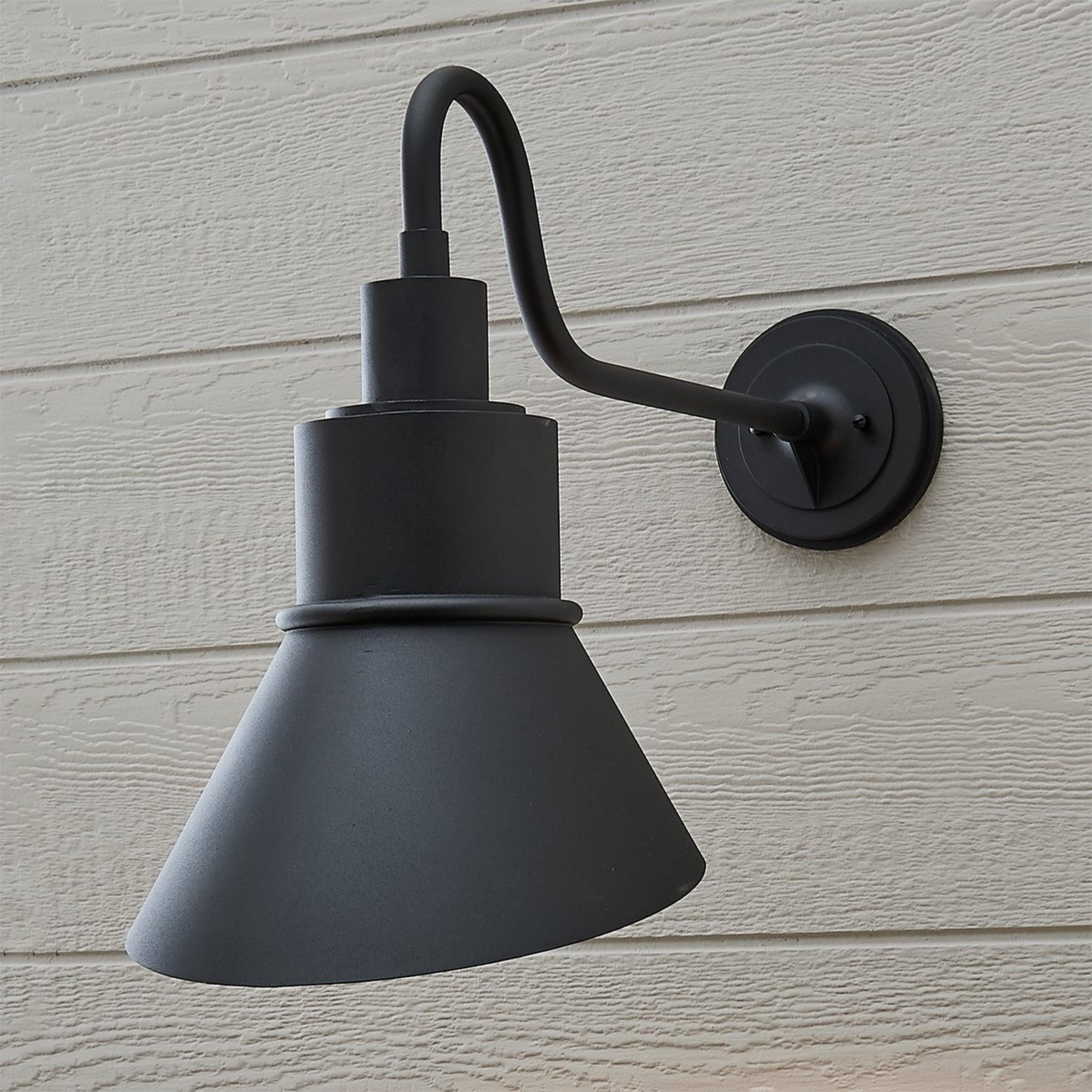 Our Hunter Outdoor Wall Light will add a splash of metallic panache on your porch, patio, or deck. The shade adds a modern feel to the traditional wall sconce with arm shape. Distinguish your exterior design with this beautiful outdoor lighting option.