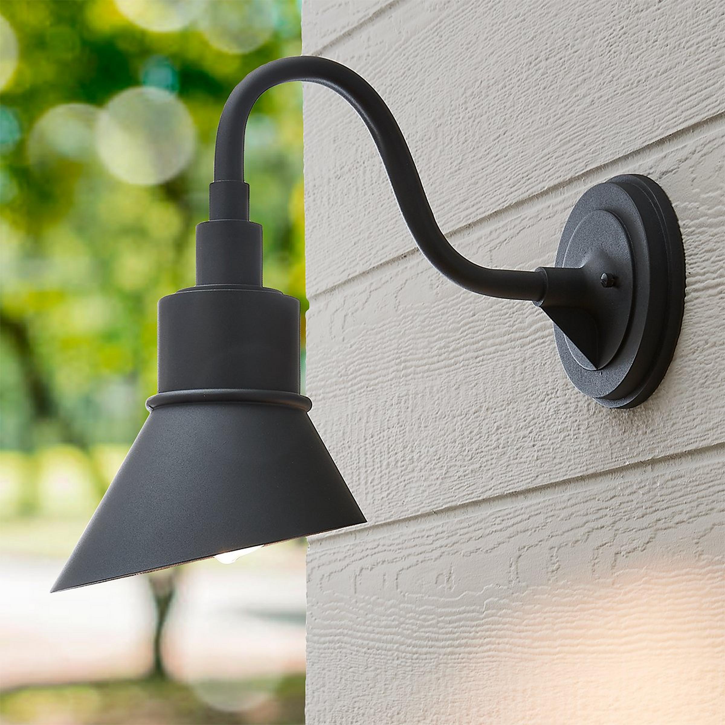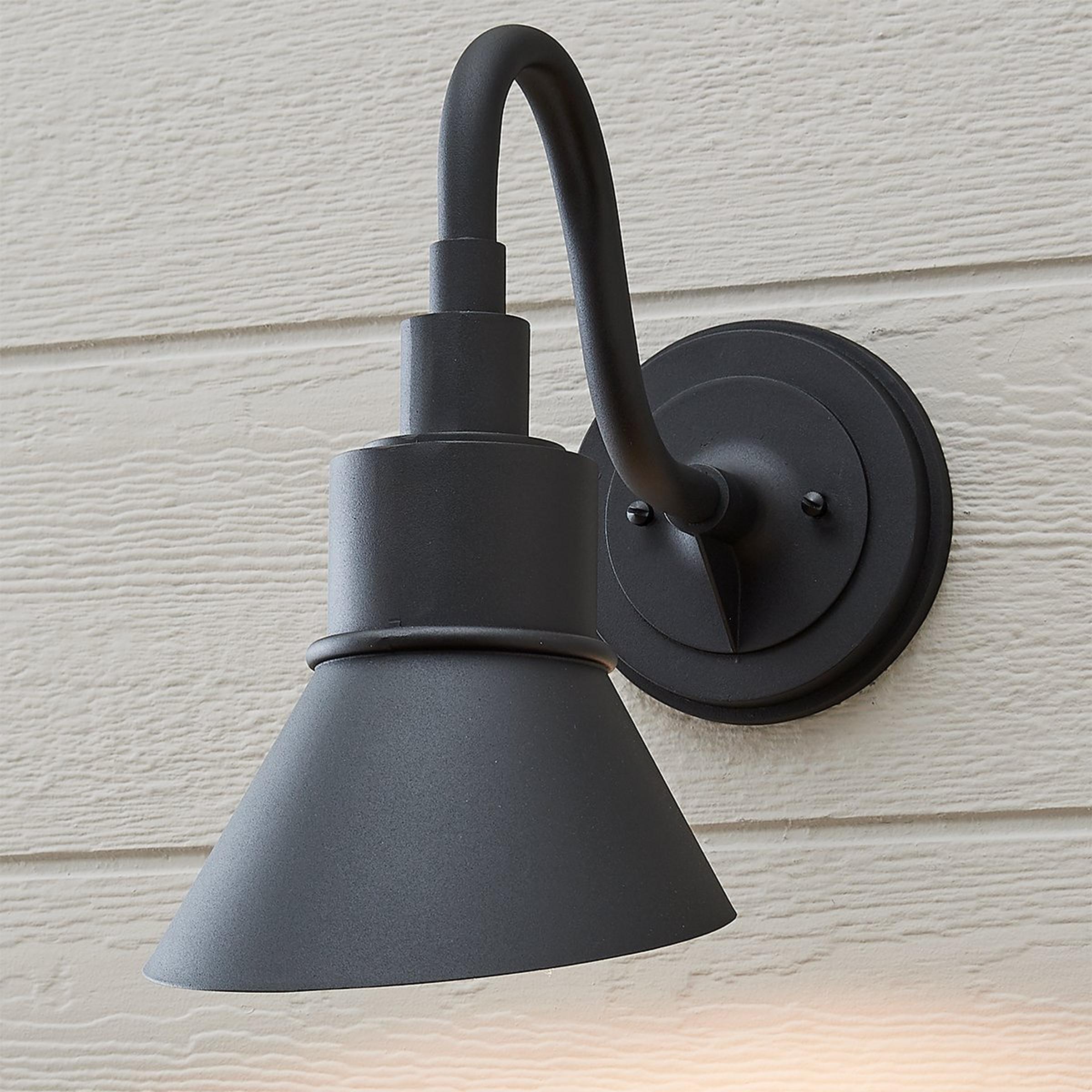 Our Hunter Outdoor Sconce will add a splash of metallic panache on your porch, patio, or deck. The shade adds a modern feel to the traditional wall sconce with arm shape. Distinguish your exterior design with this beautiful outdoor lighting option.