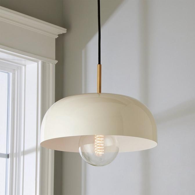 Bright and airy with a mid-century appeal, the Iconic Color Pop Dome pendant adds a subtle modern touch with delightful color choices. This versatile collection works well with breezy coastal, modern and contemporary styles. Perfect for a kitchen, playroom, kids room or nursery, or above bedroom nightstands instead of the traditional table lamp or swing arm sconces. Suitable for interior damp locations. 4" metal stem is attached to the shade. Black cloth pendant cord included. Due to monitor differences and lighting, actual colors may vary.