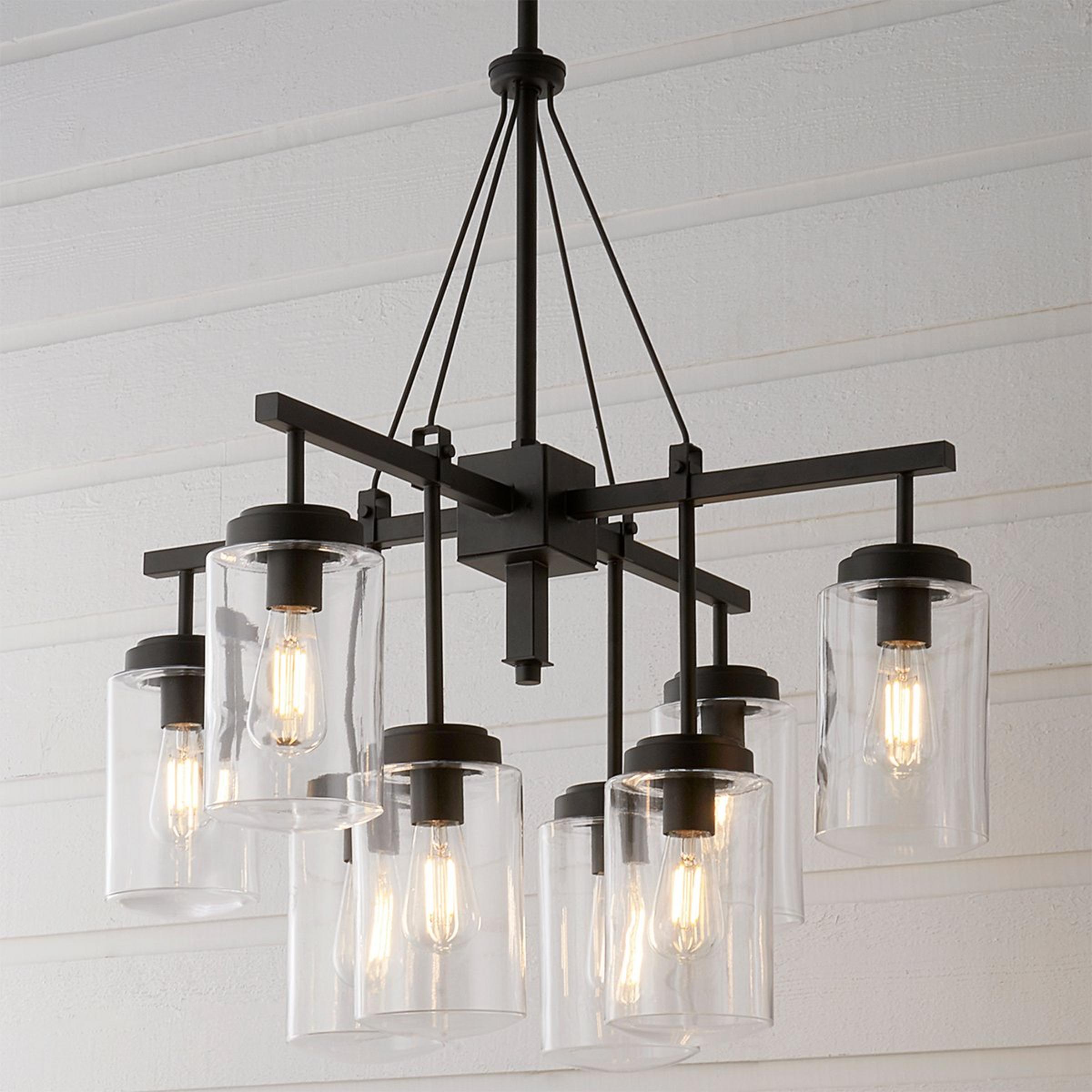 Merging form and function, this fixture transcends your outdoor space into an industrial sanctuary. The suspended glass shades protect the lights while still allowing them to shine. Our Industrial Oasis Outdoor Chandelier will bring a strong presence into your newly lit patio or porch.