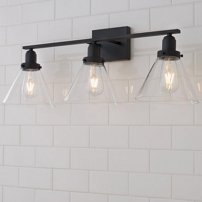 Industrial minimalism defines this stylish bath light, which pairs a simple body with classic triangular shades. For a statement fixture in your vanity area, this wall light will keep your bathroom bursting with light and style.