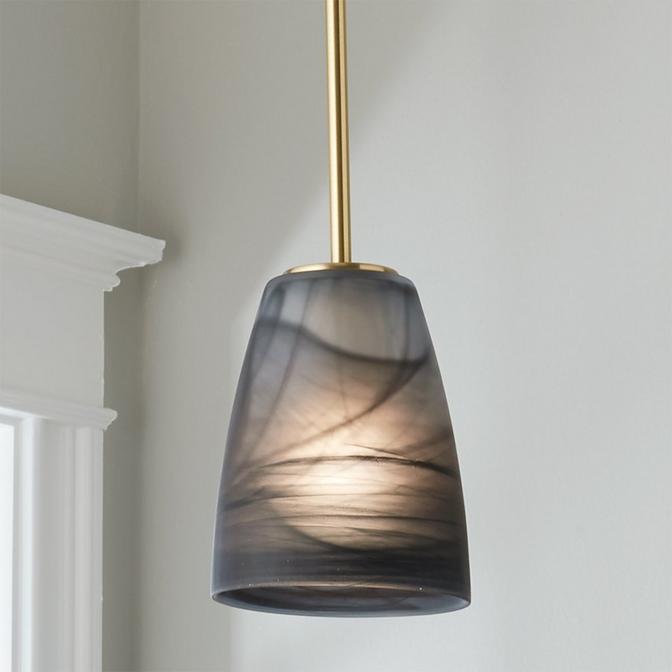 Gentle swirls of black mimic stone in this art glass pendant. A true classic with its simple hardware and soft glass, this light is an elegant addition to any bar or kitchen. Because of the nature of art glass, variations in color, pattern, and texture should be expected and celebrated; no two art glass pieces are exactly alike, making each of these lovely fixtures truly one-of-a-kind! This fixture is assembled by hand in our Richmond, Virginia production facility.