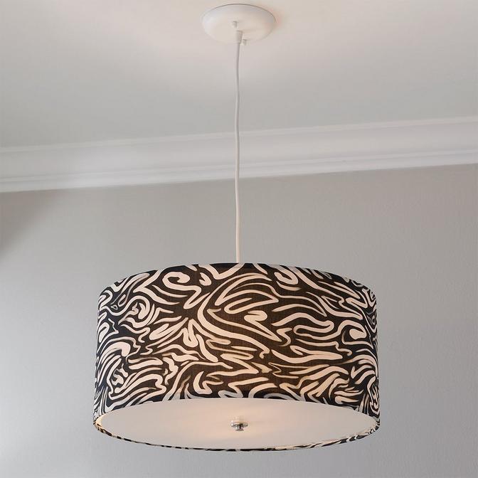 Elevate your living space with our sophisticated Inked Shade Pendant. This exclusive piece features a striking black background adorned with white swirls, creating a dynamic and modern aesthetic that effortlessly complements a variety of decor styles. This unique pendant is handmade by our in-house artisans in Richmond, VA.