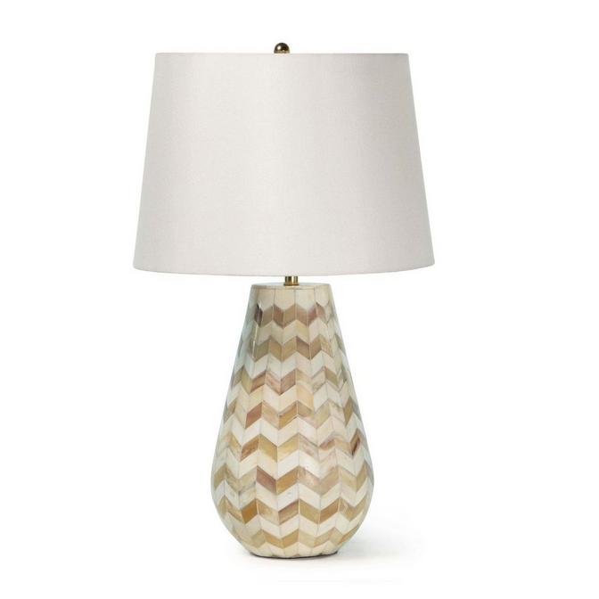 Dual tone bone inlaid in a chevron pattern creates a chic, textured look for eclectic boho rooms. This hand made table lamp ups the cool factor, as no two lamps will be exactly the same, incorporated from Coastal Living's new collection.