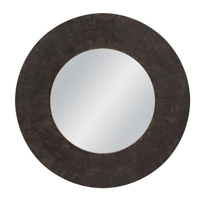 Organic and serene, the Introspect Mirror adds a sense of contrast to the home. Where most wall-hanging décor and living room furniture, such as picture frames, paintings, and sofas, have rectangular silhouettes, this mirror has a thick round frame with a meditative, linear texture. Generously sized, this mirror can serve as a main focal point and can form the basis for the rest of a room's design. Install above a mantle, use it to fill a gap on an otherwise empty wall, or pair it with sconces to complete the look.