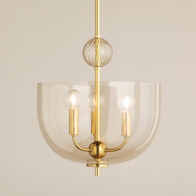 This fixture is an eclectic mix of old and new, and brings inspiration to a formal dining room or front entry. The glass sphere above the inverted dome adds an enticing decorative flair, as the texture of the glass has a lensing effect that refracts light.