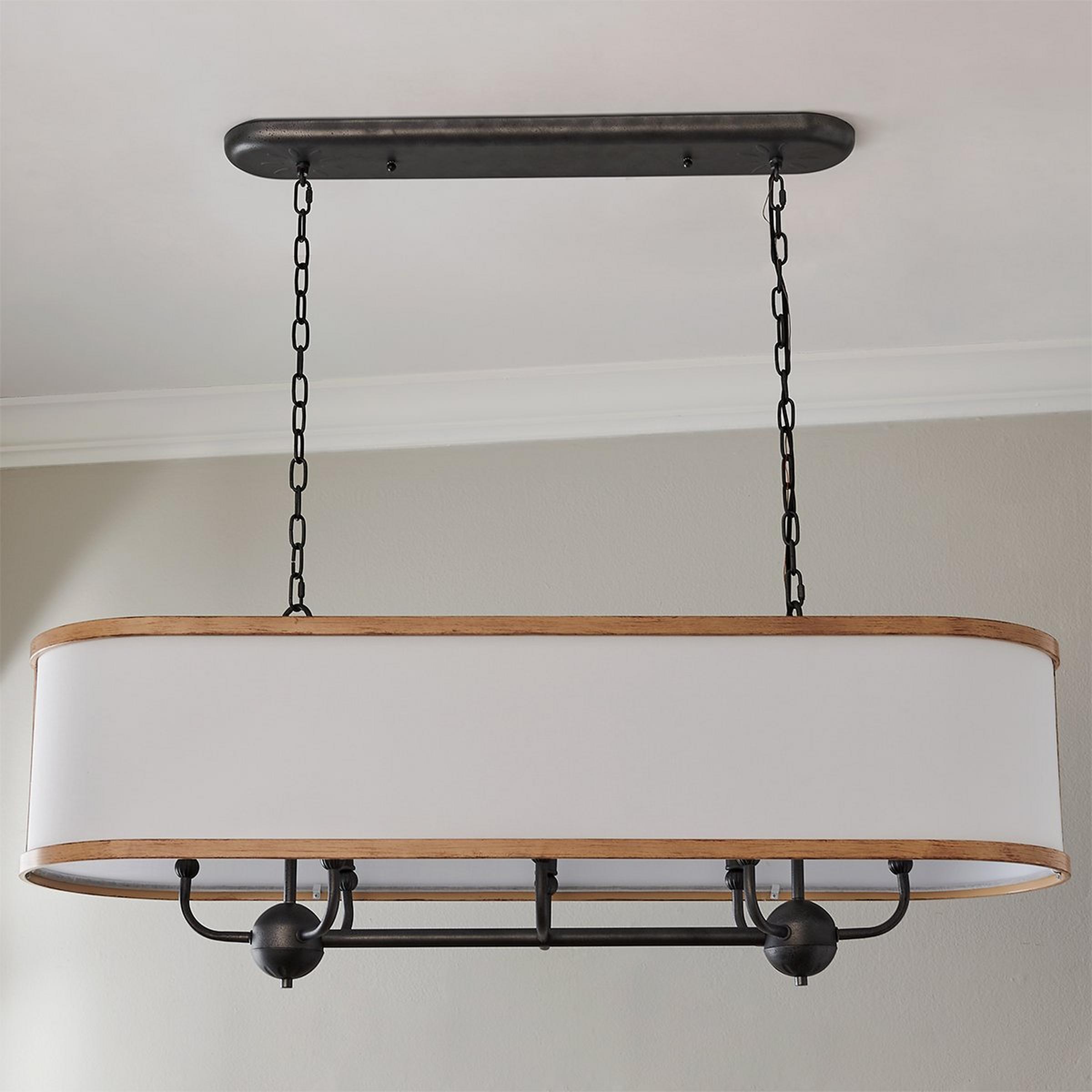 Stylish and contemporary, the Jackdaw Island Chandelier embodies an elongated circular silhouette and timeless appeal accented by subtle ribbing. Its understated design elements make an aesthetically pleasing statement.