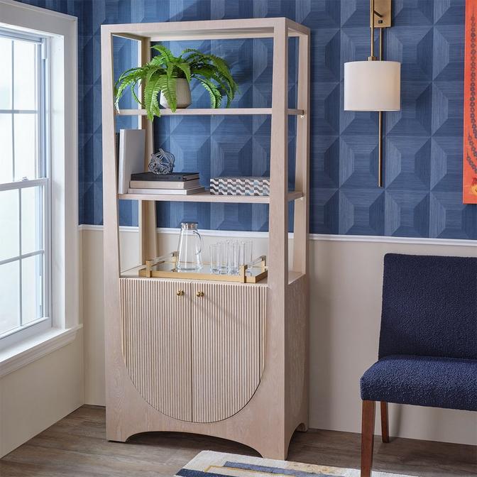The Jared Cabinet exudes a timeless elegance, seamlessly blending modern design with practical functionality. The fluted doors, adorned with gold knobs, open to unveil a concealed interior shelf, providing private storage. Meanwhile, the towering height and upper shelves create a stunning showcase for your most cherished possessions.