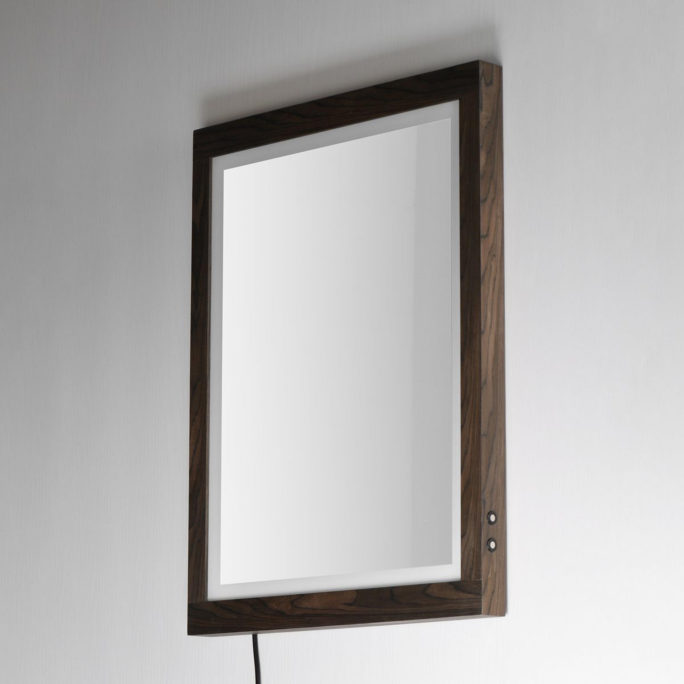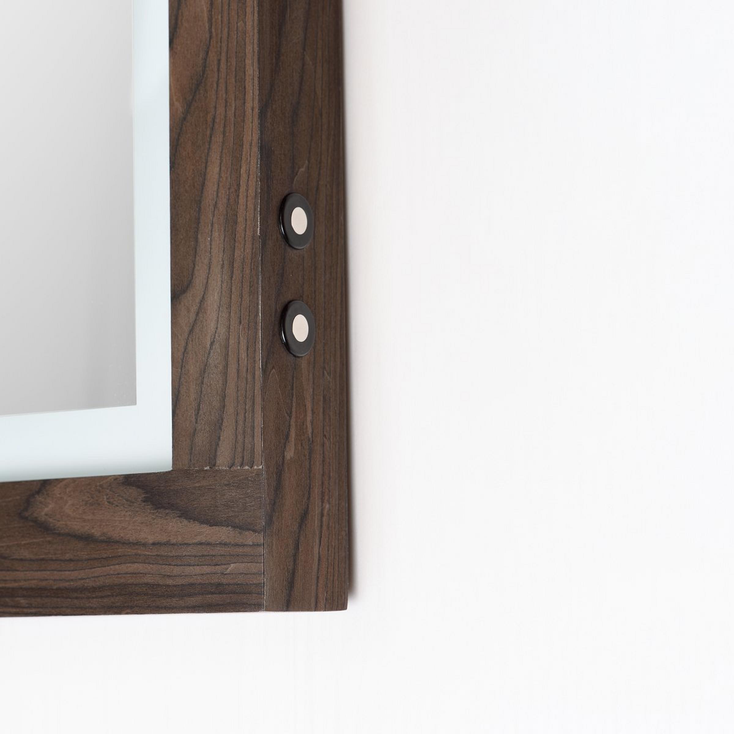 The stylish and commanding Jove LED Vanity Mirror makes a bold statement with a beautiful wood frame paired with customizable LED lighting. A 2-inch frosted band along the mirror's edge adds an attractive design accent and diffuses the LED lighting, providing gentle illumination for all your vanity needs.