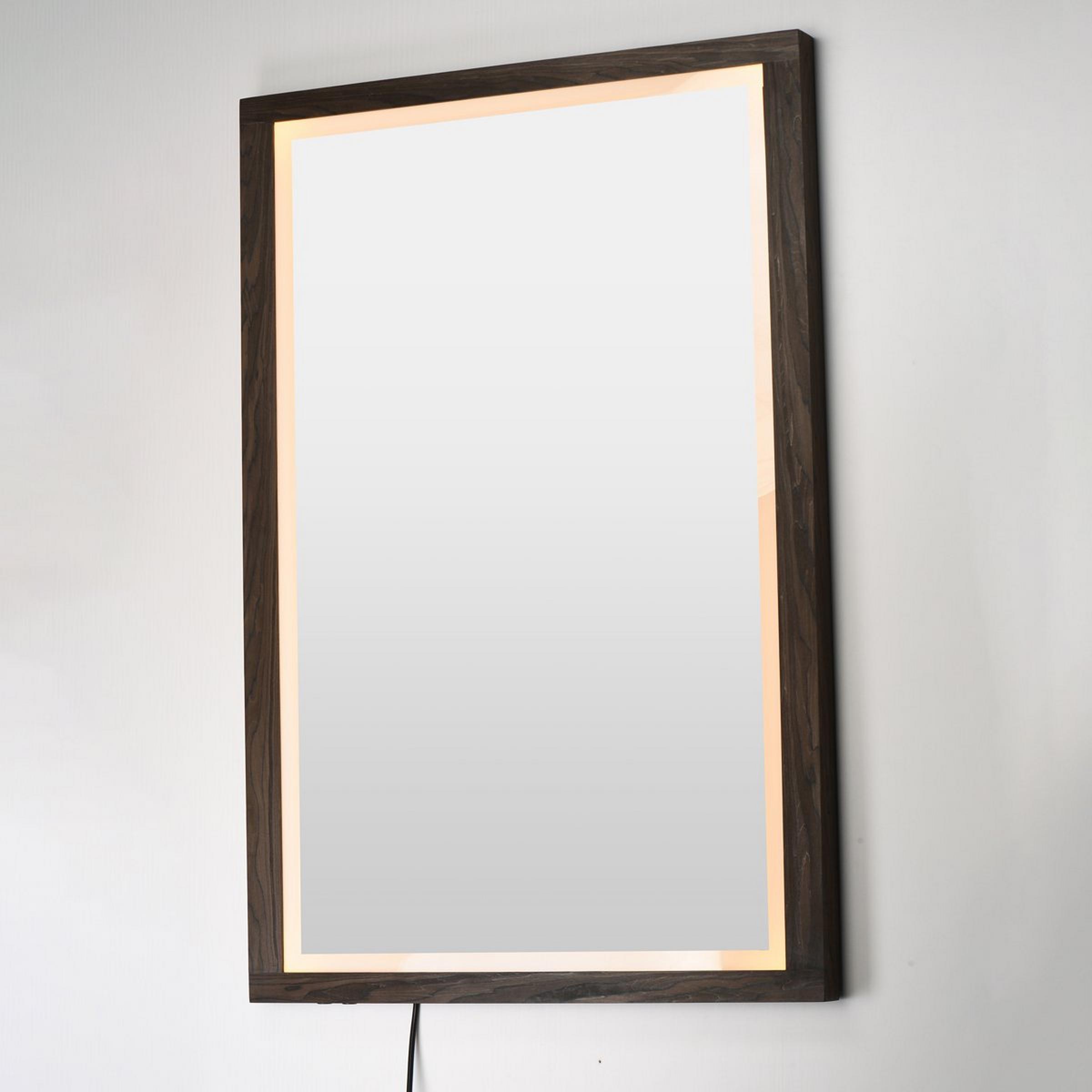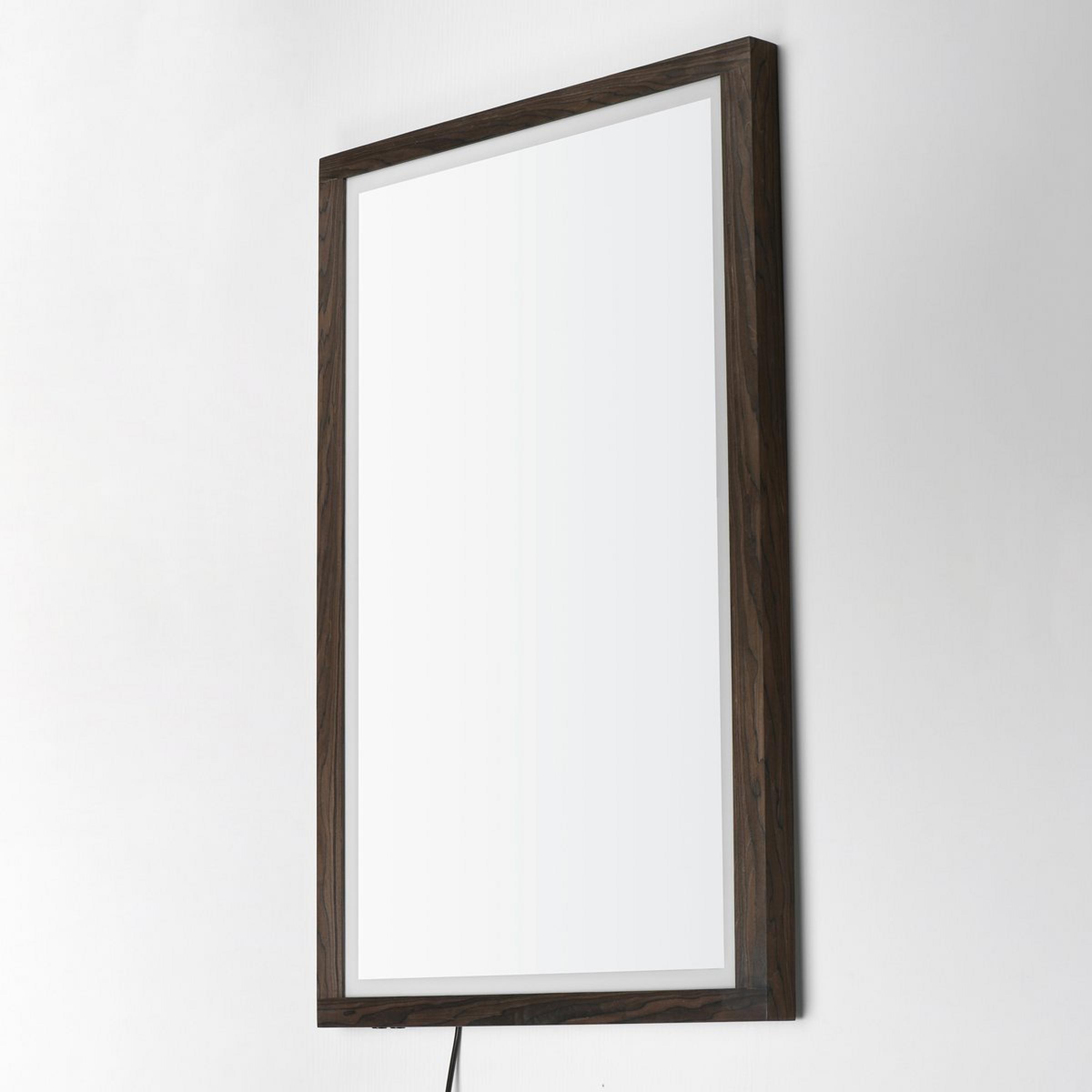 The stylish and commanding Jove LED Vanity Mirror makes a bold statement with a beautiful wood frame paired with customizable LED lighting. A 2-inch frosted band along the mirror's edge adds an attractive design accent and diffuses the LED lighting, providing gentle illumination for all your vanity needs.