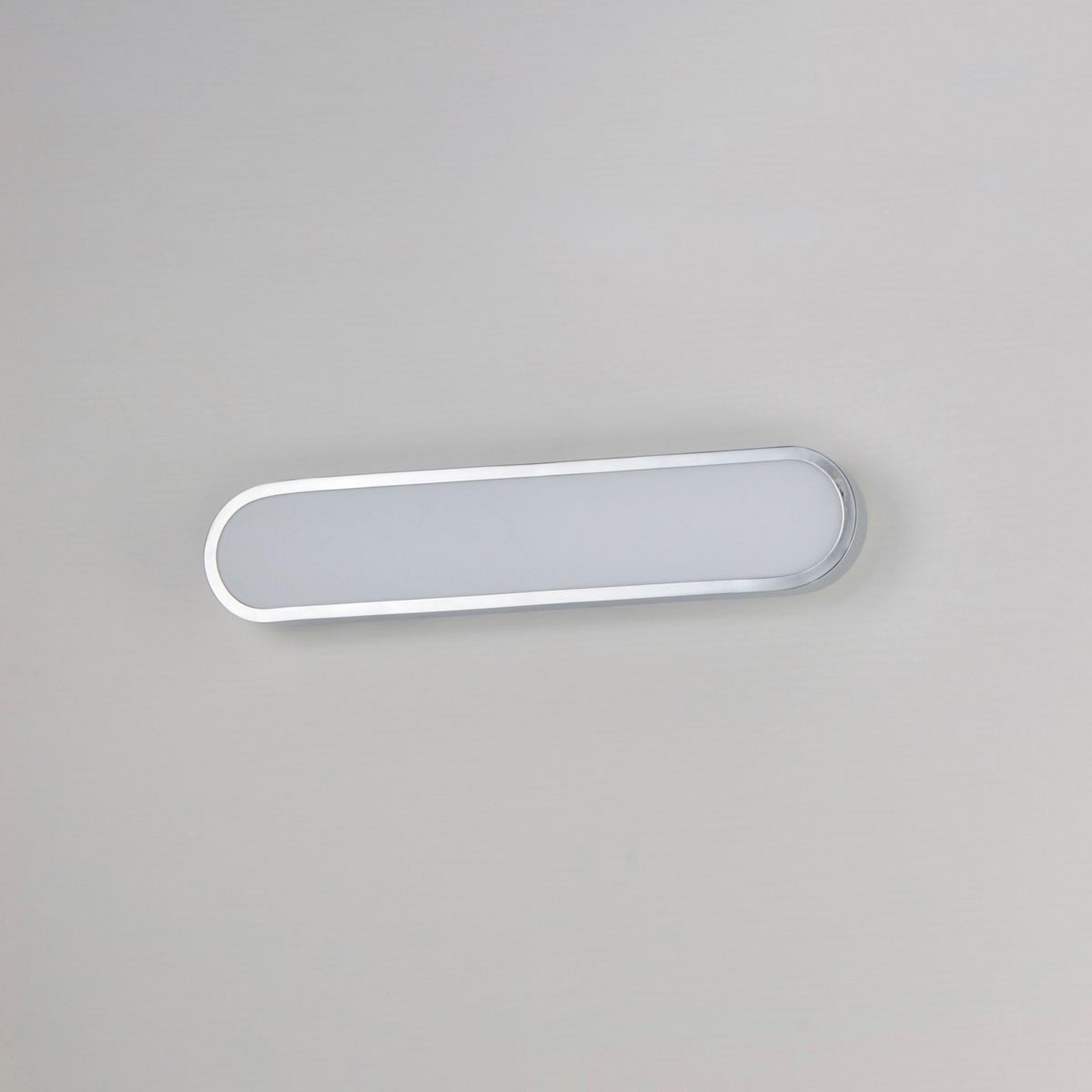 This thin bar of light beautifies any vanity, bath, or spa room. Not only does it cast a flattering soft glow, this edge-lit LED vanity light also has a variable color temperature ranging from warm to daylight in 5-step increments. The minimal, rounded rectangle design features a white acrylic diffuser and a thin metal rim.