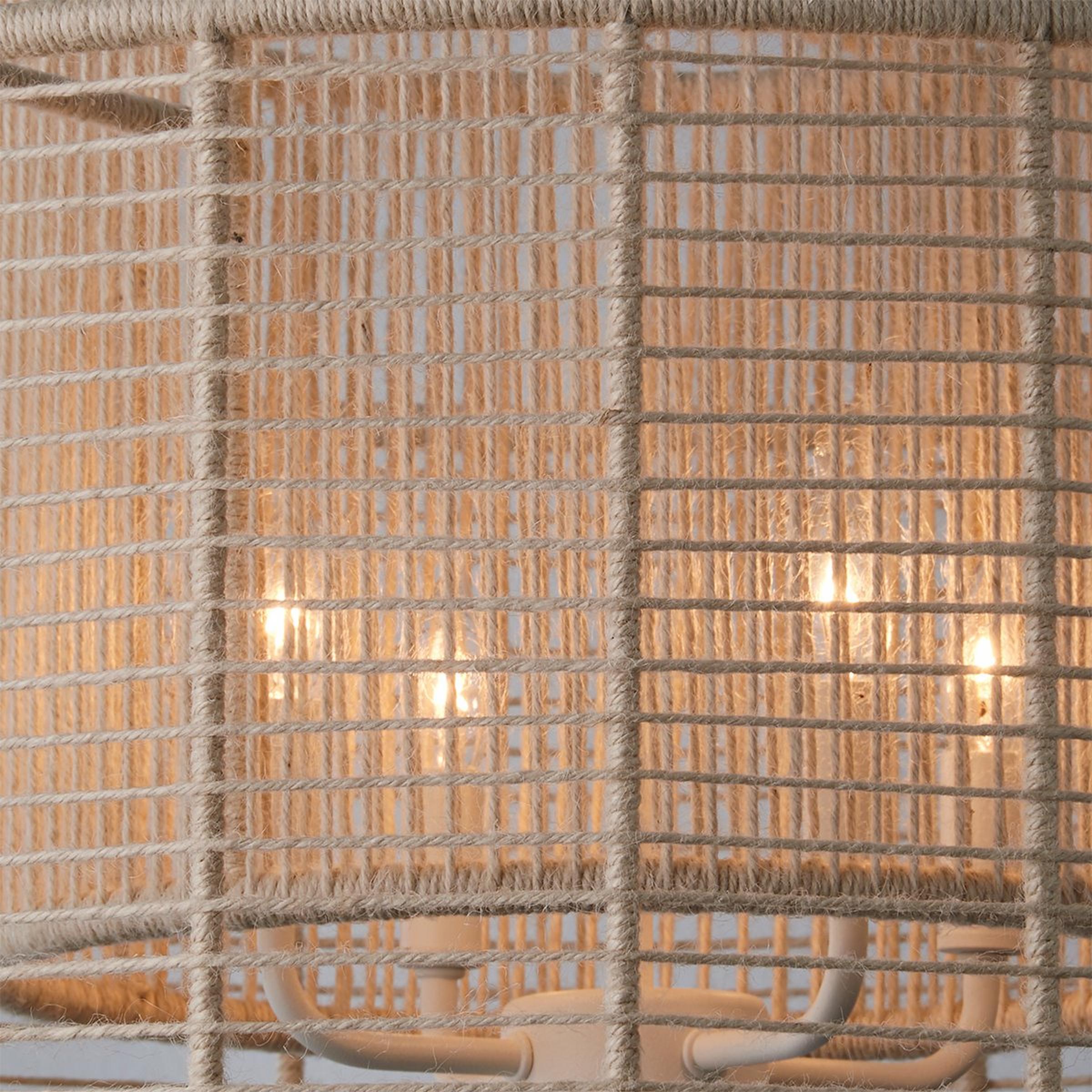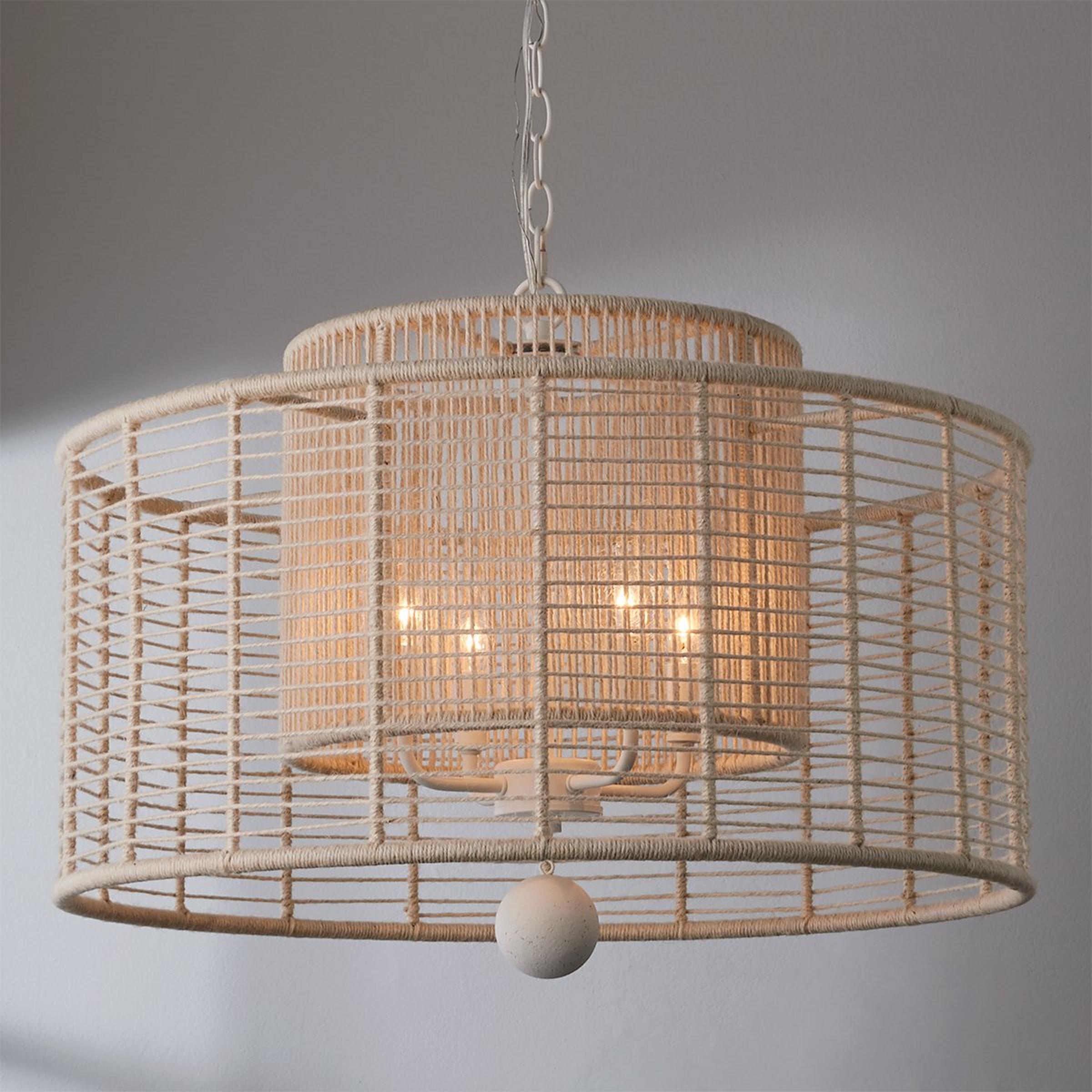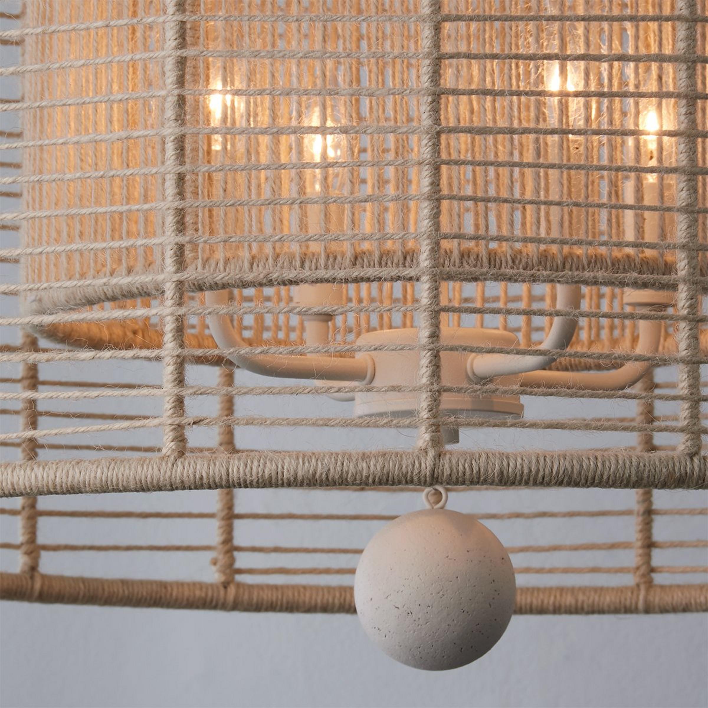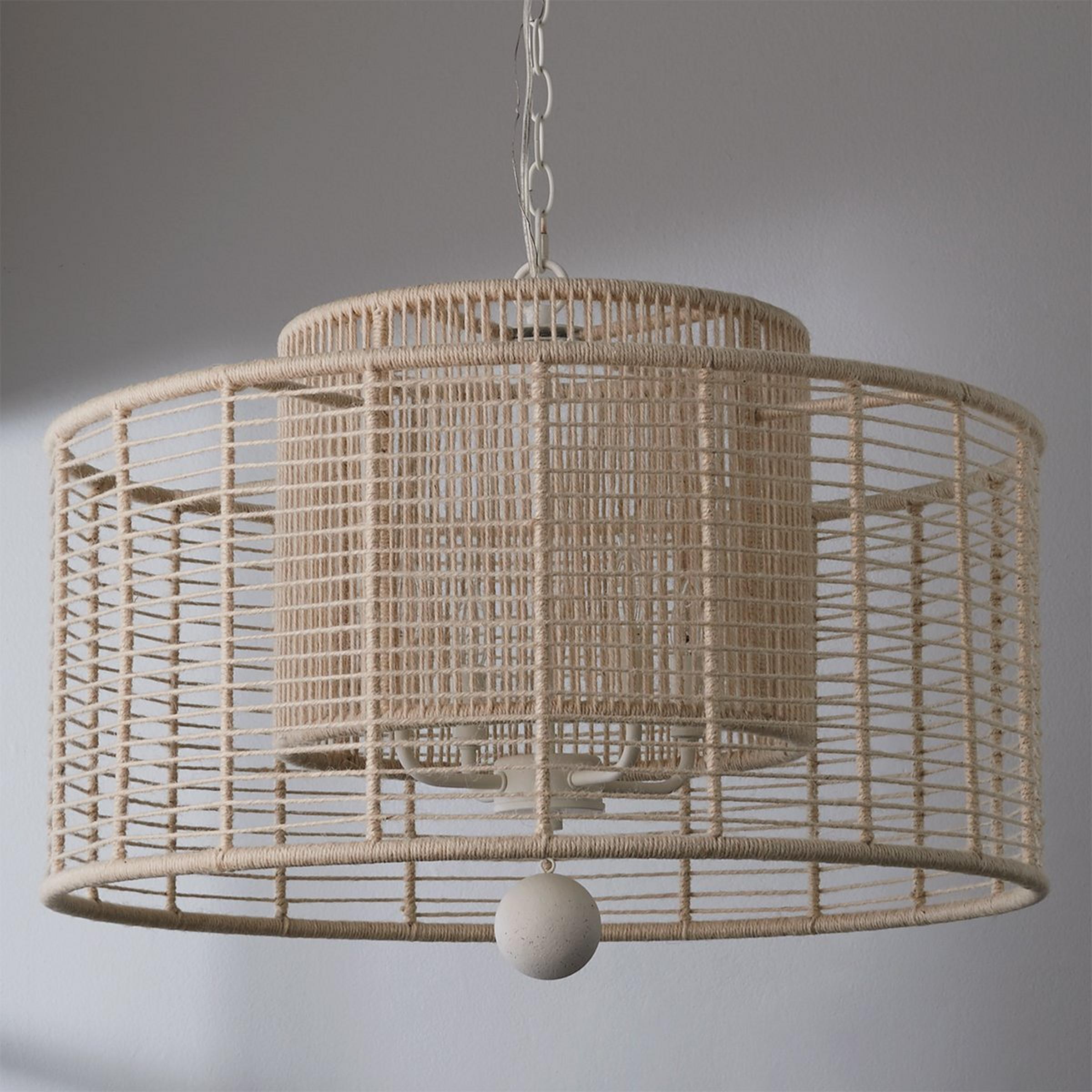 Our Jute Veil Chandelier brings new life to a nautical sense of style. The layered shades have a jute wrap around the entirety of the frames with a fun cork finial to finish off the fixture. This bold piece boasts a calming color tone that will glow in your living room or dining room.