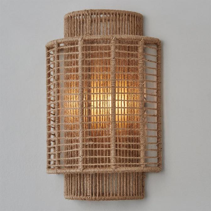 Our Jute Veil Sconce brings new life to nautical style. The layered shades have a jute wrap around the frames with a fun and bold appearance that boasts a calming color tone that will glow in your living room.