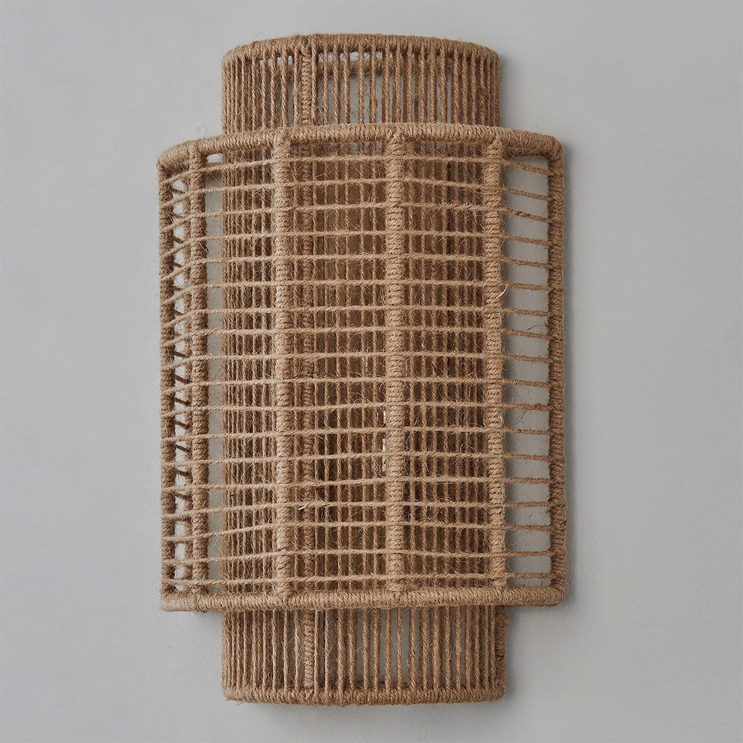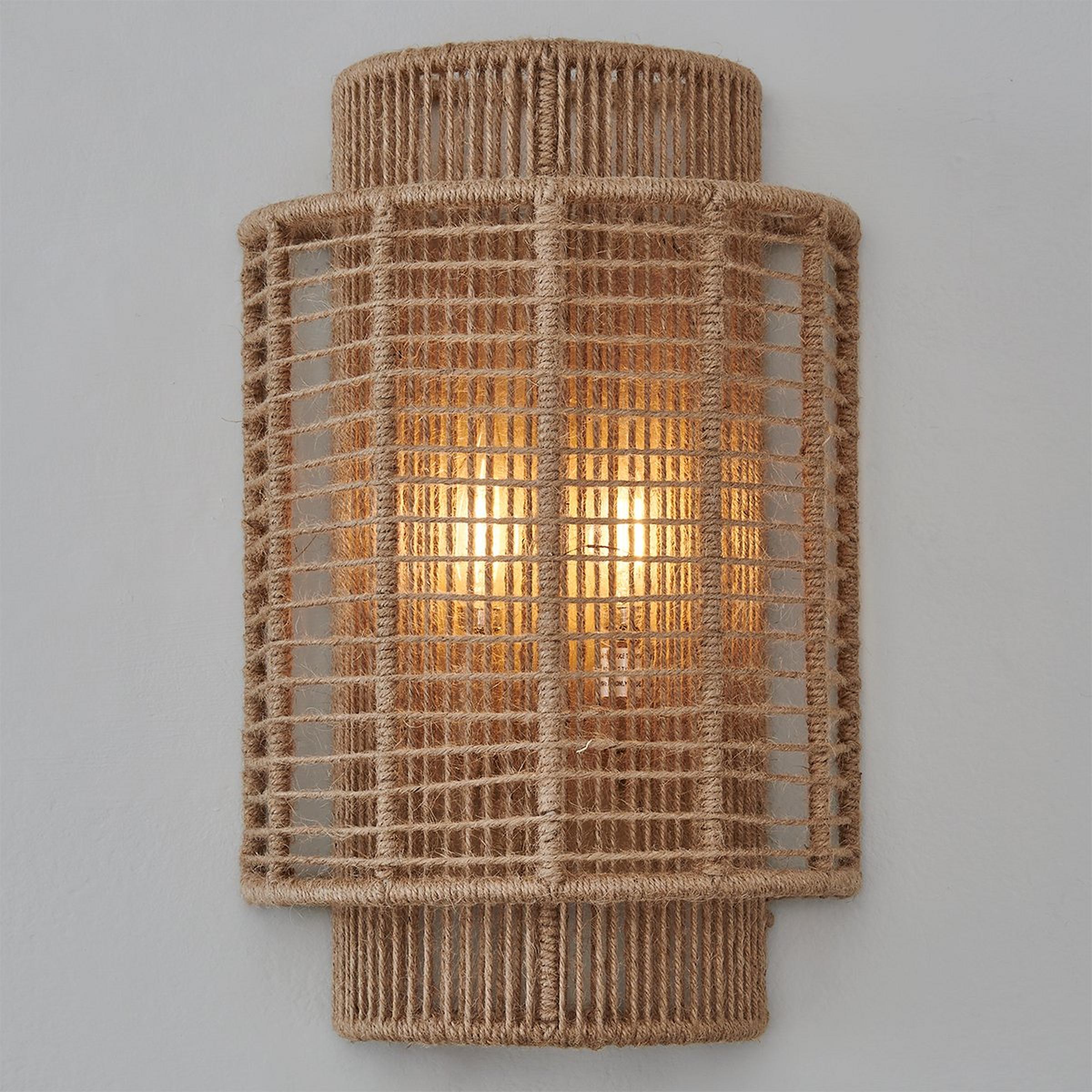 Our Jute Veil Sconce brings new life to nautical style. The layered shades have a jute wrap around the frames with a fun and bold appearance that boasts a calming color tone that will glow in your living room.
